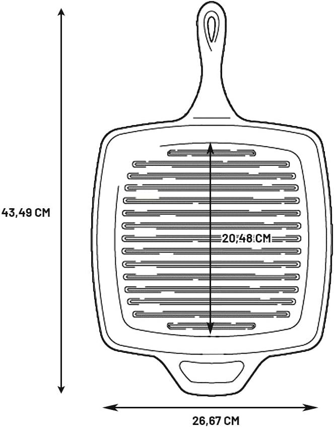 Lodge L8SGP3 Cast Iron Square Grill Pan, Pre-Seasoned, 10.5-inch Black Product Details Brand: Lodge Material: Cast Iron Special Feature: Made without PFOA or PTFE Color: Black Capacity: 1 ounces Compatible Devices: Smooth Surface Induction Product Care Instructions: Hand Wash Only Handle Material: Cast Iron Item Weight: 6.5 Pounds Is Oven Safe: Yes Model Name: L8SGP3PLT Has Nonstick Coating: Yes Is Dishwasher Safe: No Recommended Uses For Product: Use in the oven, on the stove, on the grill, or over a campfire Specific Uses For Product: Versatile cooking on stovetops, grills, ovens, and campfires Shape: square Product Dimensions: 17.25 x 10.5 x 2.62 inches Item Weight: 6.5 pounds Department: unisex-adult Manufacturer: Lodge Country of Origin: USA Item model number: Grill Pan Is Discontinued By Manufacturer: No YOUR NEW GO-TO GRILL PAN: Lodge cast iron cookware is the perfect kitchen tool for beginners, home cooks and chefs. Cast iron can handle any kitchen cooktop, oven, grill, and open flame. Crafted in America with iron and oil, its naturally seasoned cooking surface creates an easy-release and improves with use SEASONED COOKWARE: Seasoning is simply oil baked into the iron, giving it a natural, easy-release finish and helps prevent your pan from rusting. Lodge pre-seasons all cast iron cookware with 100% natural vegetable oil: no synthetic coatings or chemicals. The more you use this stove top griddle the better the seasoning will get! RUST? DON’T PANIC! IT’S NOT BROKEN: When your pan arrives you may notice a spot that looks like rust. It is simply oil that has not fully carbonized. With regular use and care the spot will disappear. If you do notice rust simply scour the affected area with steel wool, rinse, dry, and rub with vegetable oil COOKING VERSATILITY: Our grill pans have unparalleled heat retention that gives you edge-to-edge even cooking every time you use your grill pan. Cast iron cookware is slow to heat up but retains heat longer which makes cast iron ideal for pan-frying and roasting, these delicious moments are cast to last FAMILY-OWNED. Lodge is more than just a business; it is a family. The Lodge family founded the company in 1896, and they still own it today. From environmental responsibility to community development, their heads and hearts are rooted in America. Lodge products are made in the USA with non-toxic, PFOA & PTFE free material Product Description The Lodge Cast Iron Grill Pan allows grease to drain away from the food while creating tantalizing grill marks. This square grill pan is seasoned and ready to use and perfect for cooking bacon, steaks and more. Brand Story By