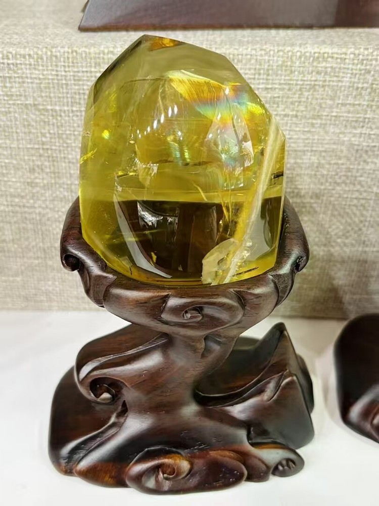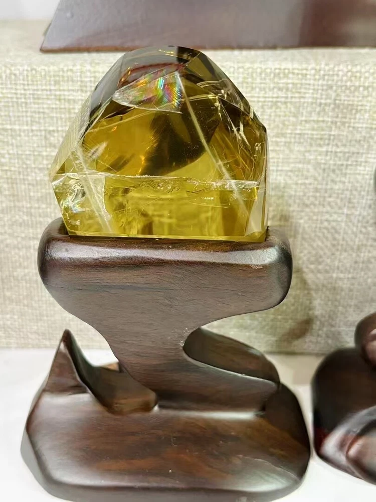 1.05lb Natural Rainbow Citrine Quartz Crystal Specimen with Stand for Reiki Decor