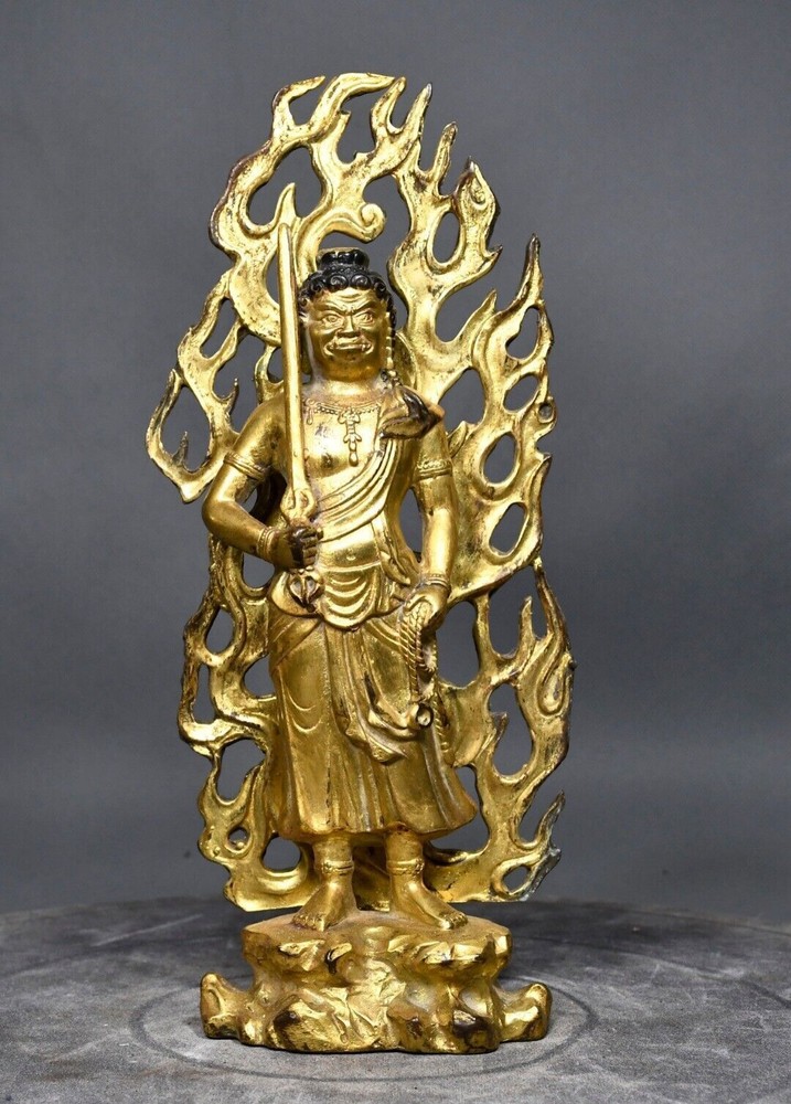 10.6" Old Antique Tibetan Buddhism temple Bronze gilt Acalanatha Buddha statue