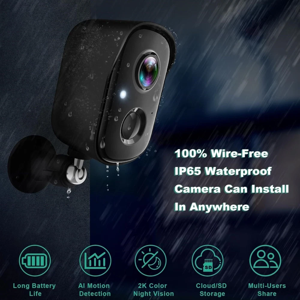 Model: Does Not Apply Item Weight: 11.3 ounces Item Width: 5.51 x 3.98 x 2.64 inches Smart Home Compatibility: Does Not Apply Operating Range: 33 feet Maximum Resolution: 1080p (FHD) Location: Outdoor & Indoor Smart Home Protocol: Wi-Fi Number of Cameras Included: 1 Number of Channels: 2 Brand: Unbranded MPN: Does Not Apply UPC: Does Not Apply Color Mode: Color Day, B&W Night gtin13: Does Not Apply Type: Security Cameras Features: Rechargeable & Waterproof & Wire-Free, PIR Motion Detection with AI Analysis Recognition, 1080P HD Live Video, Picture & Color Night Vision, Two-Way Talk & Smart Instant Siren Item Height: 5.51 x 3.98 x 2.64 inches Connectivity: Wi-Fi, Wireless Power Source: Battery Powered Color: Black