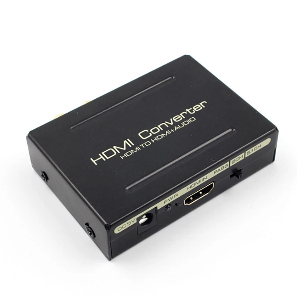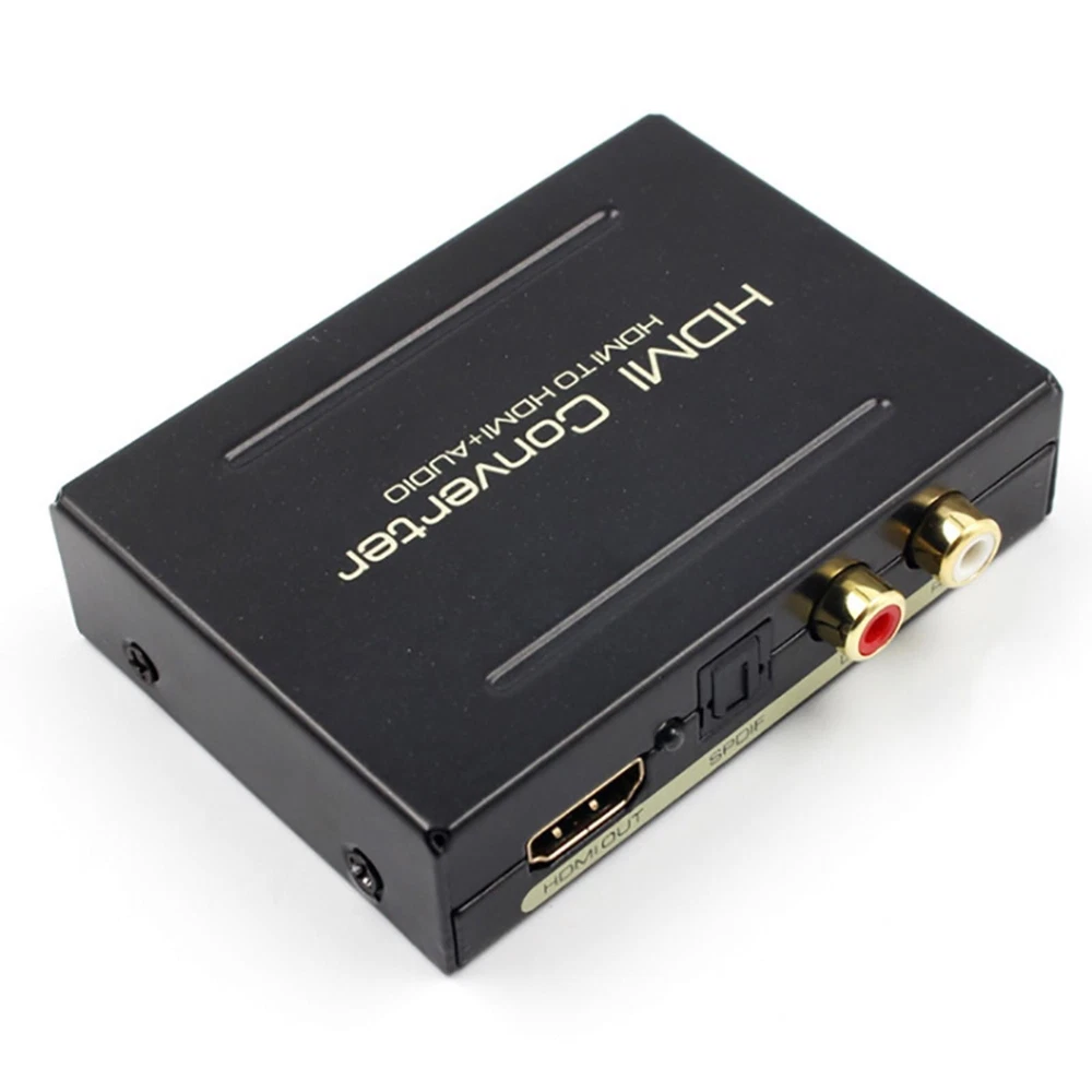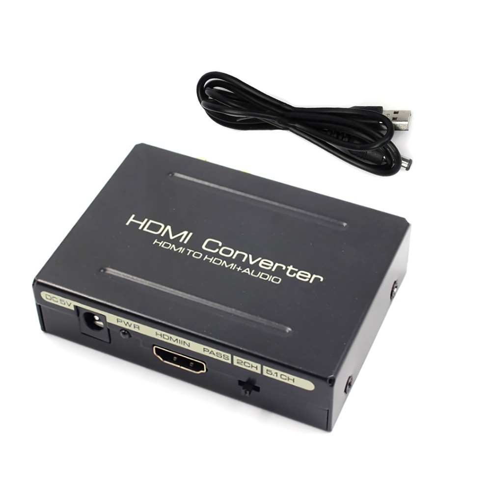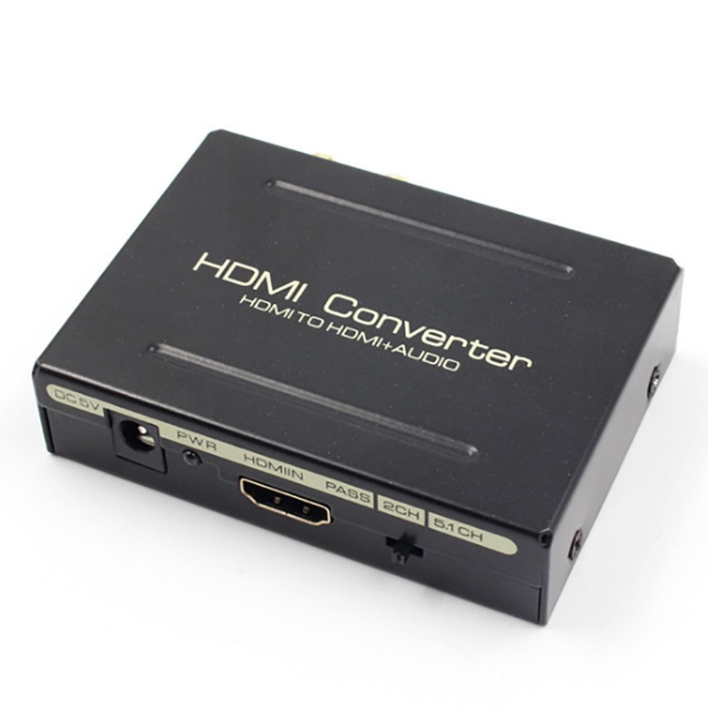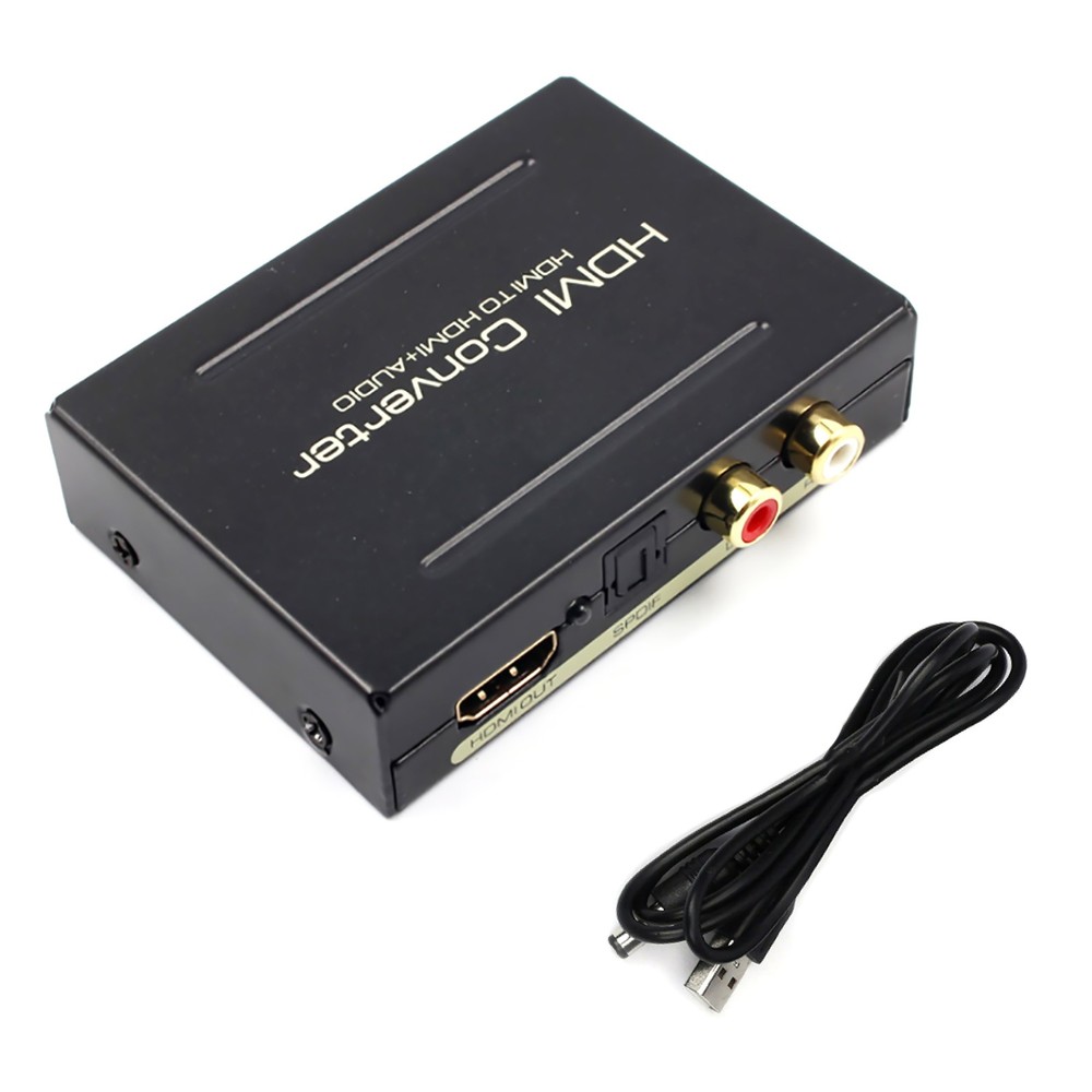 NEW-00023 1080P HDMI To HDMI+SPDIF+ R/L Analog Audio Output Converter Connecter Splitter c PRODUCT DESCRIPTION Description: One HDMI input convert to one HDMI + Audio (SPDIF + R/L) output One audio support: SPDIF + R/L analog Audio Output Input Resolution: Up to 2160P. HDMI to achieve the synchronization of audio signal separation. There are PASS / 2.0CH / 5.1CH three kinds of audio mode options. LED indication: When source of sink is working, corresponding LED is light. Supports for Apple TV and various Blu-ray player. Input Resolution: Up to 2160P. Need DC5V / 1A power input (We only offer a Power USB cable) Specification: HDMI resolution: 24/50 / 60fs / 1080p / 1080i / 720p / 576p / 576i / 480p / 480i Support video color format: 24bit deep color 30bit,36bit Audio output: L/R+SPDIF Max bandwidth: 225MHz Max baud rate: 6.75Gbps Input/Output TMDS signal: 0.5~1.5Volts p-p(TTL) Input/Output TMDS signal: 0.5~1.5Volts p-p(TTL) Input cable distance: ≤15m AWG26 HDMI standard cable Output cable distance: ≤20m AWG26 HDMI standard cable Power Supply: DC 5V (Need DC5V/ 1A power input, We only offer a Power USB cable) Max working current: 500mA Power adapter format: Input: AC(50/60Hz)100V-240V; Output: DC5V/1A Operating Temperature range: (-15 to +55°C) Operating Humidity range: 5 to 90%RH(No Condensation) Dimension(LXWXH): about 84.5 x 61.8 x 21(mm) Weight: about 135g Package included: 1 x HDMI Converter 1 x USB Power Cable 1 x User Manual Shipping Contact Us Our products have been sent to the US warehouse. All items will be shipped via WINIT CORPORATION. In 2-5 working days, you will receive your items. Thank you and have a nice day. If you have any question about us or items, please contact us, we will reply it as soon as possible. Shipping Our products have been sent to the US warehouse. All items will be shipped via WINIT CORPORATION. In 2-5 working days, you will receive your items. Thank you and have a nice day. Contact Us If you have any question about us or items, please contact us, we will reply it as soon as possible. PaymentShippingReturn policyAbout usContact us Copyright © - Tongtool All rights reserved | Design:Tongtool