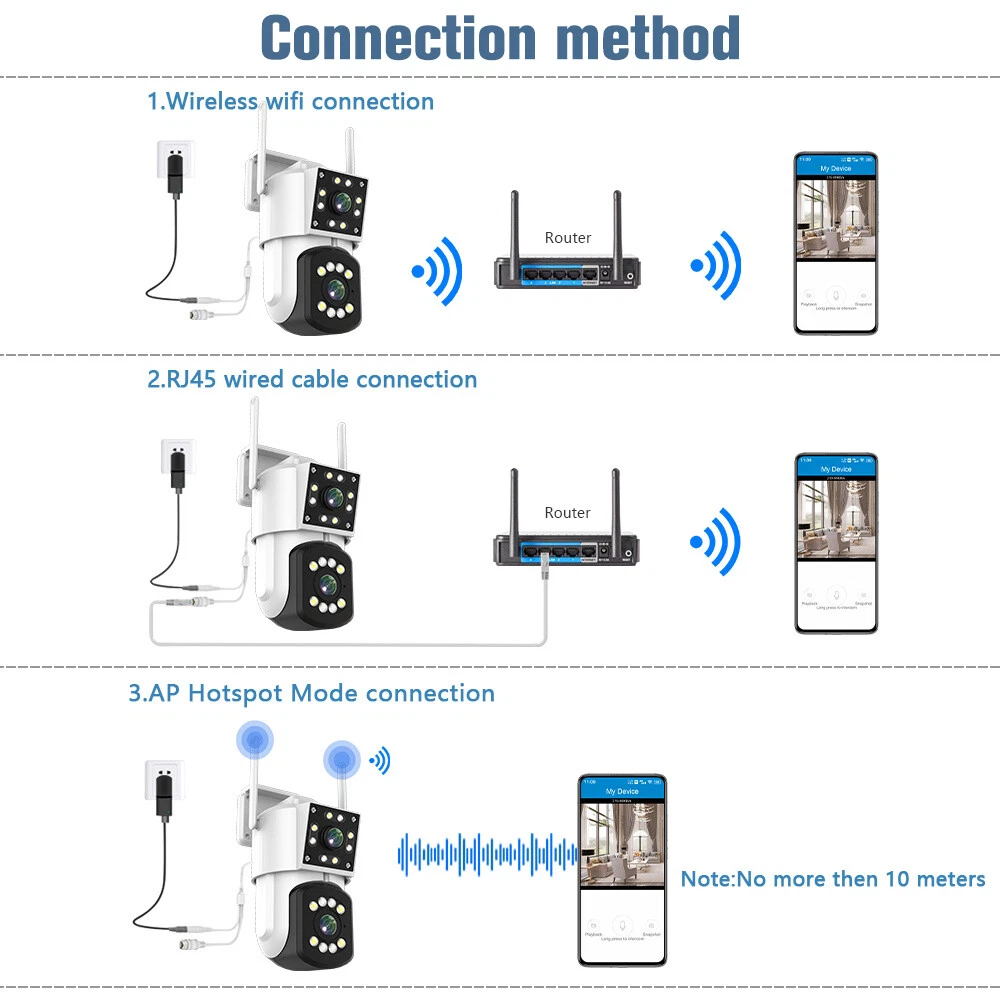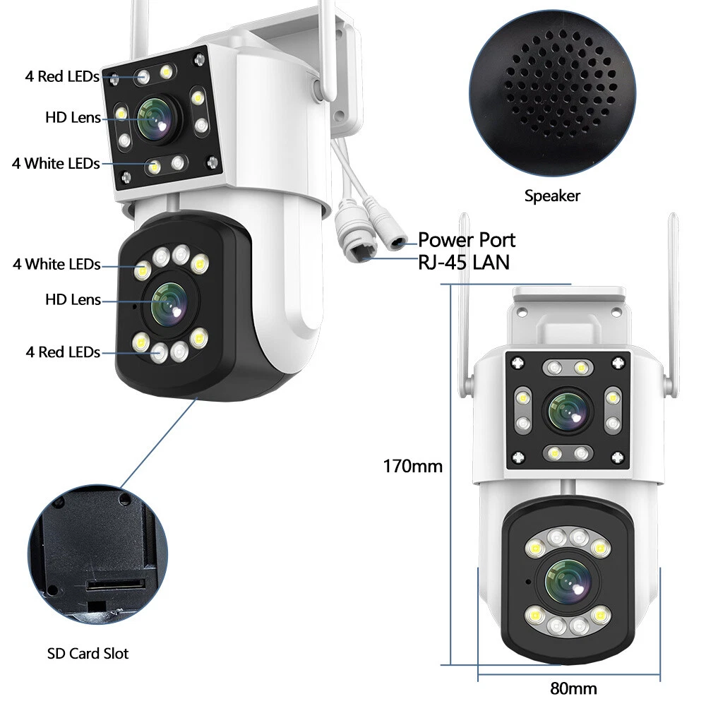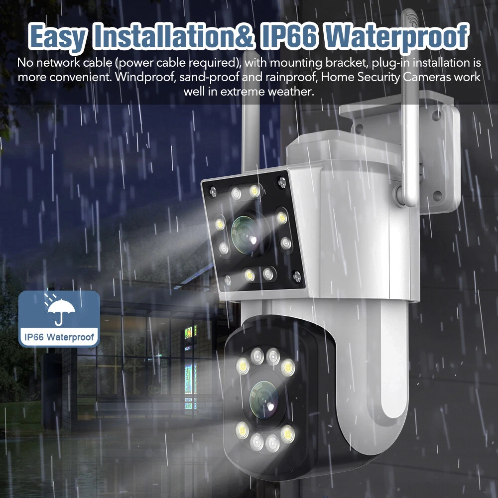 3MP HD Dual Lens Screen Wireless Security Camera System Outdoor Waterproof Home WiFi Night Vision CCTV Onvif PTZ Cam Features: 1. 3MP Dual Live Video Lingage: Double cameras can view and control two video display at the same time. Wide-angle camera is for global monitoring. The PTZ camera will automatically track and zoom.3MP high-definition lens, 2304x1296 resolution provides 2K quality and more vivid details. 2. 355°Horizontal + 90°Vertical Rotation: 355° horizontal & 90° vertical rotation range cover a much bigger vision range with less blind area. 3. Three Night Vision Modes & Garden Lights: 1080P Wireless Camera PTZ Outdoor WiFi Security Camera System CCTV Night Vision 3MP HD Dual Lens Screen Wireless Security Camera System Outdoor Waterproof Home WiFi Night Vision CCTV Onvif PTZ Cam Features: 1. 3MP Dual Live Video Lingage: Double cameras can view and control two video display at the same time. Wide-angle camera is for global monitoring. The PTZ camera will automatically track and zoom.3MP high-definition lens, 2304x1296 resolution provides 2K quality and more vivid details. 2. 355°Horizontal + 90°Vertical Rotation: 355° horizontal & 90° vertical rotation range cover a much bigger vision range with less blind area. 3. Three Night Vision Modes & Garden Lights: surveillance wireless camera assures clear images and blur-free videos within 66FT/20M in low light. It features three night vision modes, smart, infrared and full-color modes. 4. Motion-Tracking&Alerts: Motion-Tracking allows the camera to track objects in motion. When enabled the camera will begin to automatically record and follow the object in motion. You will receive alerts directly on your IOS/Android Device from the app once motion is detected. 5. 24/7 Local Storage & Two-way Audio - Supports SD card (not included) to ensure that all your videos are securely protected, you can check out those important moments anytime. The security cameras wireless outdoor has built-in upgraded microphone and speaker, helps you communicate with people and intimidate intruders through the app. 6. Easy Installation & IP66 Waterproof: No network cable (power cable required), with mounting bracket, plug-in installation is more convenient. Windproof, sand-proof and rainproof, Home Security Cameras work well in extreme weather. Specification: Resolution: 3MP/300W Sensor: CMOS Lens: 4MM View angle: 90° Pan-tilt: Horizontal: 355° Vertical:90° WaterProof: IP66 LED quantity: 8pcs white LED + 8pcs Infrared LED. Connectivity: Wi-Fi, RJ45 Wired WiFi connection: AP hotspot direct connection/wireless WiFi connection WiFi Operating Frequency: 2.4GHz WiFi Standard: IEEE 802.11a/b/g/n Onvif: Support Night vision:IR-CUT switch Automatic,about10-30meters (It varies from environment). Three Night vision Model: infrared night vision、Full-color night vision、Sound and light alarm night vision Audio: Built-in microphone and speaker, support two-way audio and real-time transmission,Clear and delay free two-way audio. Humanoid detection: mixing line, area, two-way flow detection, for human form, the item triggers no alarm. Storage: TF Card (up to 128G, not included), Cloud Storage(optional) Supported Mobile Systems: Android/ios. Package Included: 1*Dual Lens Wifi Camera 1*Power Supply 1*English Manual 1*Screws Bag Item Specifics Brand : Unbranded Type : PTZ Model : Y8-2A Connectivity : Wireless Features : 3MP Two-way Audio Three Night Vision Modes Surveillance Technology : PTZ Smart Home Protocol : Wi-Fi Location : Outdoor & Indoor Maximum Resolution : 2304x1296 Storage Capacity : up to 128G, not included Operating Sound Rating : 90 dB Power : 300W Power Source : Wall Plug-In Color : Black View angle : 90° Pan-tilt : Horizontal:355° Vertical:90° LED quantity : 8pcs white LED 8pcs Infrared LED. WiFi Operating Frequency : 2.4GHz Supported Mobile Systems : Android/ios. Color : Black View angle : 90° Pan-tilt : Horizontal:355° Vertical:90° LED quantity : 8pcs white LED 8pcs Infrared LED. WiFi Operating Frequency : 2.4GHz Supported Mobile Systems : Android/ios. Payment We Accept Paypal Only. Shipping We will ship to your eBay address. Please make sure your eBay address is correct before you pay. We will ship out your order within 2 business days after receiving your verified payment (Excluding Weekends and Public Holidays)! Item located in the USA, We will ship out your order via USPS or UPS . It will take 3-8 business days to you. If you can't track your parcel or didn't receive your parcel, please kindly contact with us. Returns We offers 30-day refund, and 1 year manufactured warranty on all products, Warranty period starts from the date of purchase.We are not responsible for any kind of compatible issues, or problems related to any specific software or games. Please check our description carefully before purshing. If there is not anything wrong with our product or description, we wont bear the return shipping. In order to return an item you must contact us to request a Return Merchandise Authorization Number (RMA) Contact Us We try to make sure you have a pleasant shopping experience with us, so that we could do more business with you. If there is any dissatisfaction, please email us. We will try our best to resolve the issues. Please give us the opportunity to resolve any problem. PS. you may contact us by 'Ask a question' FM tranimitter On Sale Store Promotion You may like Store Category Store Home Home&Garden (G&V) Big discount Other Hot Item 360° 1080P E27 Light Bulb Camera 2.4G HD Wi-Fi Home Smart Security Cam Monitor USD 26.22 3MP Wireless Camera PTZ Outdoor WiFi Security Camera System CCTV Night Vision USD 44.06 6MP WiFi Security Camera Outdoor 3x Lens PTZ Auto Tracking IR Night Vision Cam USD 48.63 1-4Pcs Solar Panel Charger for Arlo Ultra/Ultra2/Pro 3/Pro 4 Security Camera USD 23.18 Dual Lens 4K HD WiFi Camera Wireless Outdoor CCTV PTZ Home Security IR Cam USD 38.62 New List Item 6MP 3 Lens WiFi Security IP Camera Outdoor PTZ CCTV Vi