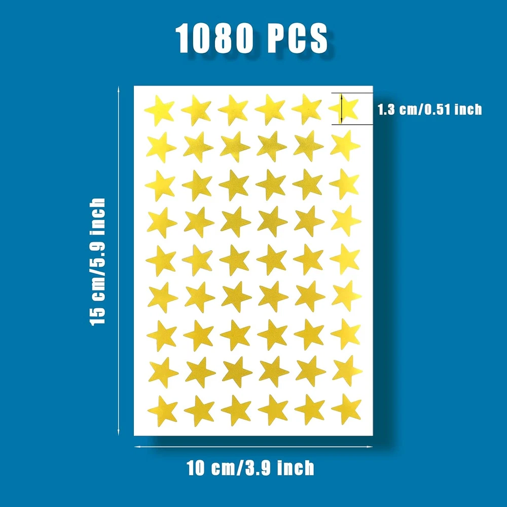 1080Pcs Gold Star Stickers, Small Metallic Removable Star Reward Stickers for Ki