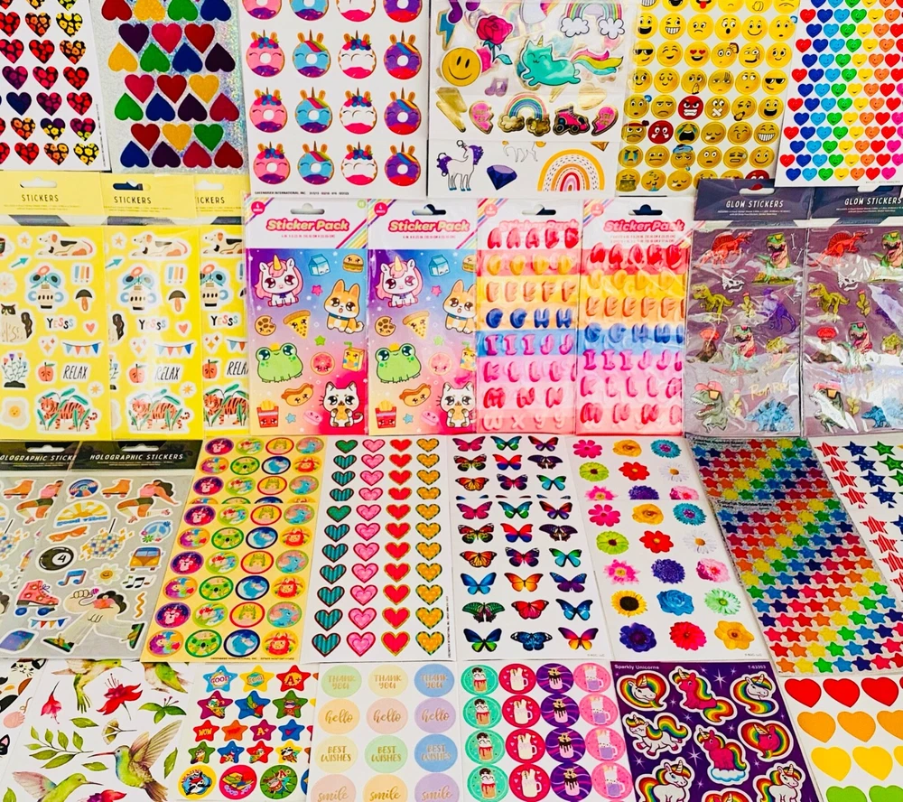All stickers are BRAND NEW | Still in their original packaging! HUGE Mixed Sticker Lot | The Ultimate Kit | Qty. 1088+ Stickers | High Quality Only! Fun Assortment of Puffy, Scrapbook, Cartoons, Bubble, Pop Up Stickers Packs For Everyone! You will receive 29+ Sticker Sheets of beautiful colorful assortment. The Pack will include 1088+ Stickers overall! I have included a large variety of pictures of the assortment available. The pictures give you an idea of what you will be receiving. Please Note: You will not receive everything pictured. Please contact me with any special requests. This HUGE Variety of fun designs stickers can be used in parties, classroom, school and home, good for reward for students, potty training, adding inside a birthday card, game activities, entertaining toddlers, etc. Perfect Gifts for Kids & all Occasions: Can be given as a gift for kids, girls, boys, toddlers, teens, students, friends, and classmates, they will love it! Each package of stickers is a different style & theme with some lovely embellishments like rhinestones, ribbons, buttons and other 3D details that make these quality stickers look so unique!