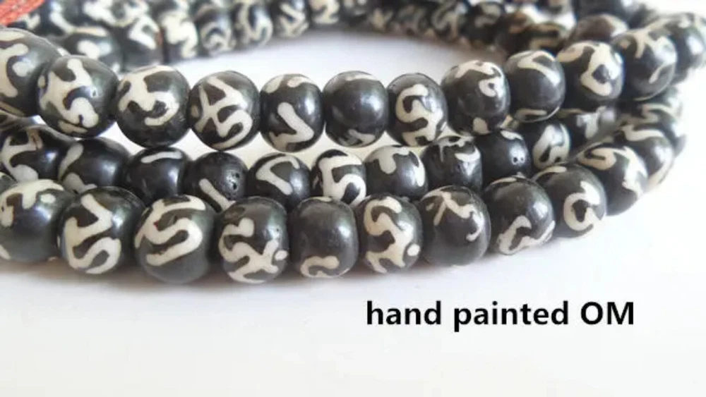 Tibetan 108 beads yak bone OM mantras prayer beads mala. *made of Tibet yak bone beads, full of Tibetan taste *On each bead, painted OM mantras, OM is the first symbol of Tibetan Mantras. *Each bead is slight different color, black,dark brown,owing to hand made. *total premeter about 60cm /23.6in Payment Payment must be made within 5 days after you won my items. Delivery details We ship package via speedPAk, if you want to choose faster shipping way like EMS, DHL ..Please contact us ASAP. Terms of sales Hope that you will love my items. If you are not satisfied with them, Please Contact me within 7 days and I will arrange the exchange or refund your 100% money. Any problems can be resolved without leaving a negative/neutral feedback. I am willing to make every purchasing a happy one. About us Customers' Satisfaction is our goal.Any problem just feel free to contact us first.Thank you very much. Contact us Happy communication, happy shopping experience! Please Contact us before leave the feedback and open dispute on eBay !