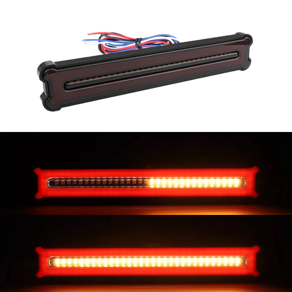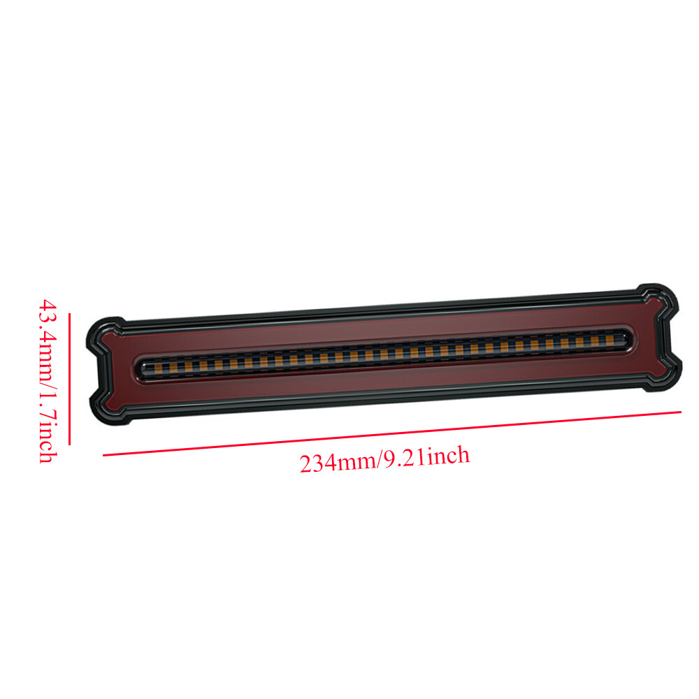 Features: 【3-in-1 Functionality】Combines tail, brake, and sequential turn signal lights, enhancing visibility and safety for fit for heavy trucks and trailers. 【High LED Count】Features 109 LEDs, providing bright red and amber light, ideal for fit for various vehicles. 【Wide Voltage Range】Operates on 12-24V DC, ensuring compatibility with fit for many vehicle electrical systems. 【Robust Construction】Made from ABS and LED materials, offering long-lasting performance for fit for demanding environments. 【Rear Bumper Placement】Designed for rear bumper installation, providing optimal light positioning for fit for heavy trucks and trailers. Specification: Name: Brake Tail Turn Lights Material: ABS+LED LED Quantity: 109 pcs Voltage: 12-24V DC Light Color: Red+Amber Size: 234mm/9.21inch Position: Rear Bumper Fitment: Universal compatible with most vehicles heavy trucks with 12-24V DC, such as fit for heavy trucks, semi/cargo trailers, work vehicles, and wide or narrow overland vehicles Package Included: 1 x Brake Tail Turn Lights