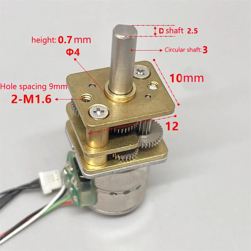 10BY 10mm 2-Phase 4-Wire Brushless Stepper Gear Reduction Motor Full Metal Robot Description: 1.Model: OT-GSM10-066 2.Rated voltage: DC5 V 3.Phase resistance: 18 ohms 4.Wiring: 2-Phase 4-Wire (red black wire A+A -, green white wire B+B -) 5.Step angle: 18 degrees 6.Reduction ratio: about 1:298 7.Line length: 60mm 8.Weight: 9.1 g Features: All metal gears, high torque, low noise, durable, adjustable speed, reversible, small size, stable and precise. Application: Intelligent robots, intelligent furniture, intelligent focusing system, miniature gimbal, etc We are factory direct seller,if you need larege quantity please contact us! Package Include: Motor x 1 Payment Delivery details Terms of sales Return Contact us Payment We accept payment by PayPal only. Payment must be received within 7 days after auctions ended. Delivery details Items will be shipped within 1-2 business days when we received payment. Shipping to USA takes about 8-15 days in normal condition,other countries takes about 15-35 days. Please verify your eBay primary shipping address. We are not responsible for any wrong or undeliverable addresses. Terms of sales All items will be checked before packing Your feedback and 5 star ratings are much appreciated. If you are unhappy with your purchase, please contact us on negative / neutral feedback or low star ratings. Return If you receive an item is damaged or defective, we will refund you or replace it with identical one. All damaged or defective items may be exchanged within 30 days. Contact us We take full responsibility if you receive wrong item or damaged item or item not as describled. If you're not satisfied for any reason, please feel free to contact us.Just send us an eBay message. Actual Rated Input Voltage 5V Current Type DC Nominal Rated Input Voltage 5V Shaft Diameter 3mm(D shaft 2.5mm) Model OT-GSM10-066 Base RPM 8RPM