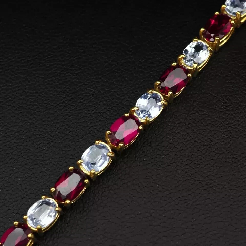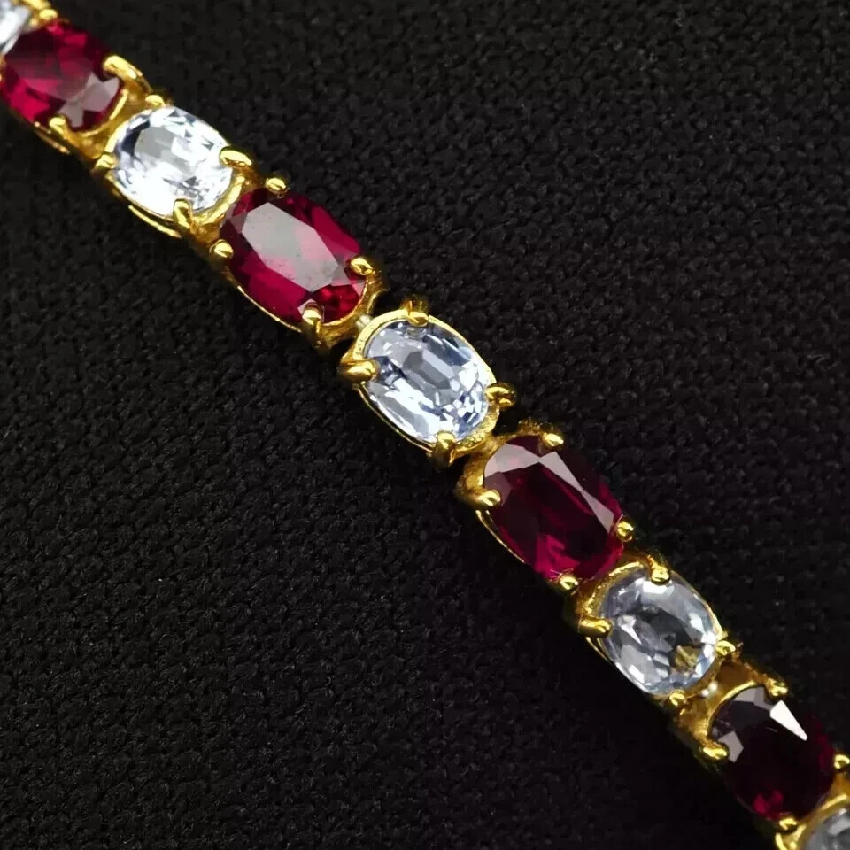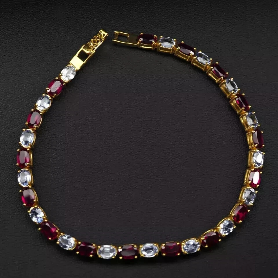 Lab-Created Baguette Diamond Tennis Bracelet 14K Gold Plated 6Ct 7 Inch