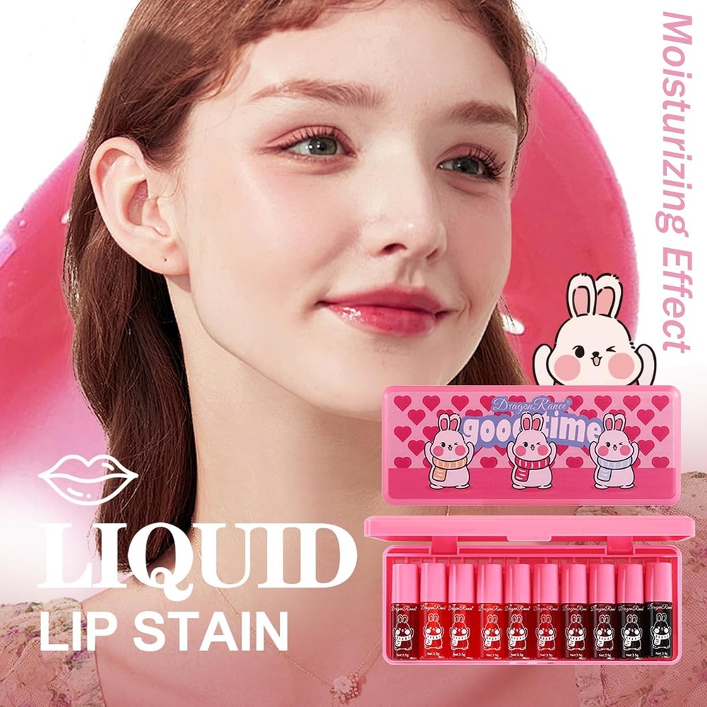 $ 8.210-Color Korean Lip Tint Set, Watery Glossy Stain with Moisturizing Minis