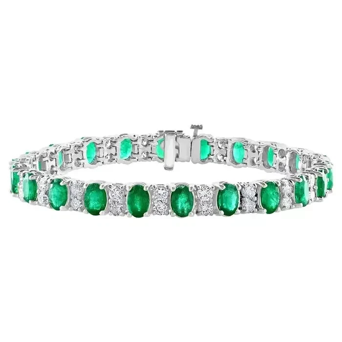 10Ct Oval Cut Lab-Created Green Emerald Women's Bracelet 14K White Gold Plated
