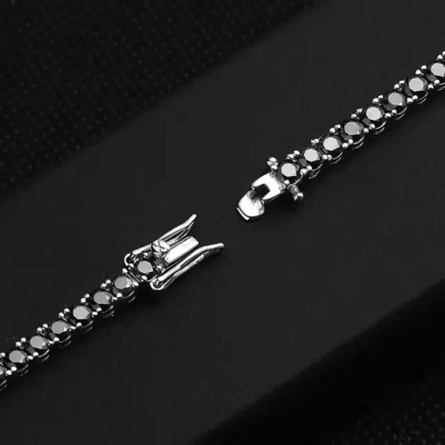 Main Stone Width: As per picture Secondary Stone: Diamond Seller Warranty: Yes Type: Bracelet Item Length: As per picture Main Stone Color: Black Signed: No Metal: Sterling Silver Occasion: Anniversary, Birthday, Christening, Christmas, Engagement, Graduation, Mother's Day, Valentine's Day, Wedding Color: White Wholesale: Yes Handmade: Yes Number of Gemstones: As Per Picture Brand: karunas-76 Charm Type: Snap Personalize: Yes Main Stone Length: As per picture Features: Engraved Main Stone: Simulated Diamond Base Metal: Sterling Silver Style: Tennis Customized: Yes Material: Stone, Metal Cut Grade: Excellent Country/Region of Manufacture: India Setting Style: Prong Antique: No Closure: Spring Ring Sizable: Yes Country of Origin: India Shape: Round Metal Purity: 925 Main Stone Depth: As per picture Gemstone Clarity Grade: NA Theme: Beauty Vintage: No Main Stone Treatment: Not Enhanced Era: Undated Main Stone Shape: Round Main Stone Creation: Simulated Chain Type: Cable