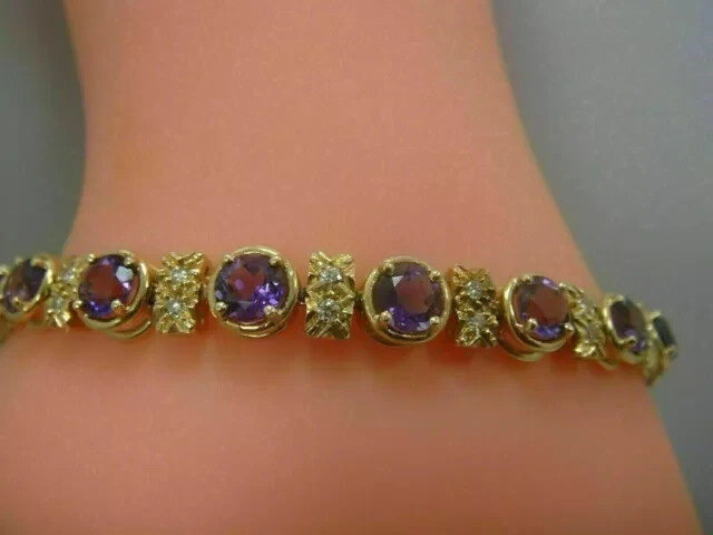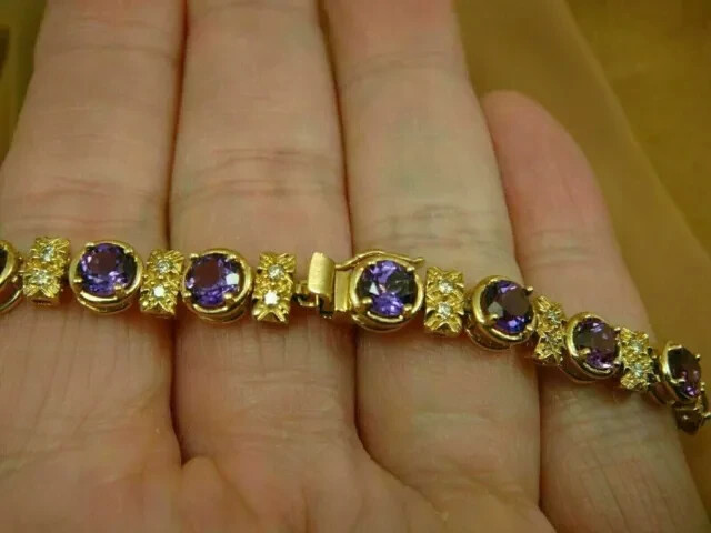 Chain Type: Box Total Carat Weight: 10.00Ct Main Stone Creation: Lab-Created Seller Warranty: Yes Metal Purity: 925 Customized: Yes Color: Yellow Main Stone Color: Purple Type: Bracelet Occasion: Anniversary, Birthday, Christmas, Engagement, Valentine's Day, Wedding Style: Tennis Closure: Turnlock Certification: NA Diamond Color Grade: D Item Length: 7.5 in Theme: Beauty Main Stone Shape: Round Wholesale: Yes Features: Engraved Material: Gemstone, Stone Setting Style: Bezel Cut Grade: Excellent Metal: Sterling Silver Secondary Stone: Diamond Colored Diamond Intensity: Fancy Personalize: Yes Gemstone Clarity Grade: Eye Clean Shape: Round Number of Diamonds: Multi Main Stone: Amethyst Diamond Clarity Grade: Very, Very Slightly Included (VVS1) Main Stone Treatment: Not Enhanced Number of Gemstones: Multi Sizable: Yes Charm Type: Traditional Brand: Jewelryforyou-7 Base Metal: Silver Seller Notes: “@+++Big Sale Off Hurry up Offer for Limited Time+++@”