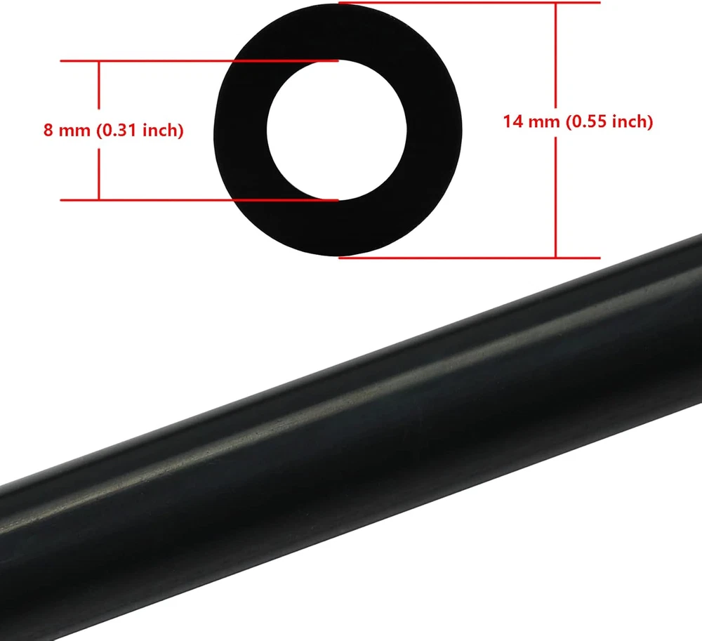 Inner Diameter: 5/16 inch (8mm). Length: 10 feet (3m). Wall Thickness: 1/8 inch (3mm) Made of high temp reinforced silicone Working Pressure: 43PSI. Burst Pressure: 100PSI (high temperature),130PSI (room temperature). Temperature range: -40°F to 428°F (-40°C to 220°C) For air and water only. Not for gas and oil. Quality tested to ensure long-lasting performance Please check the dimensions of your original item before purchase Product Description Application: For air and water only. Not for gas and oil. Quality tested to ensure long-lasting performance. Made of high temp reinforced silicone Working Pressure: 43PSI. Burst Pressure: 100PSI (high temperature),130PSI (room temperature). Temperature range: -40°F to 428°F (-40°C to 220°C) Wall Thickness: 1/8 inch (3mm). It can prevent collapse under vacuum.
