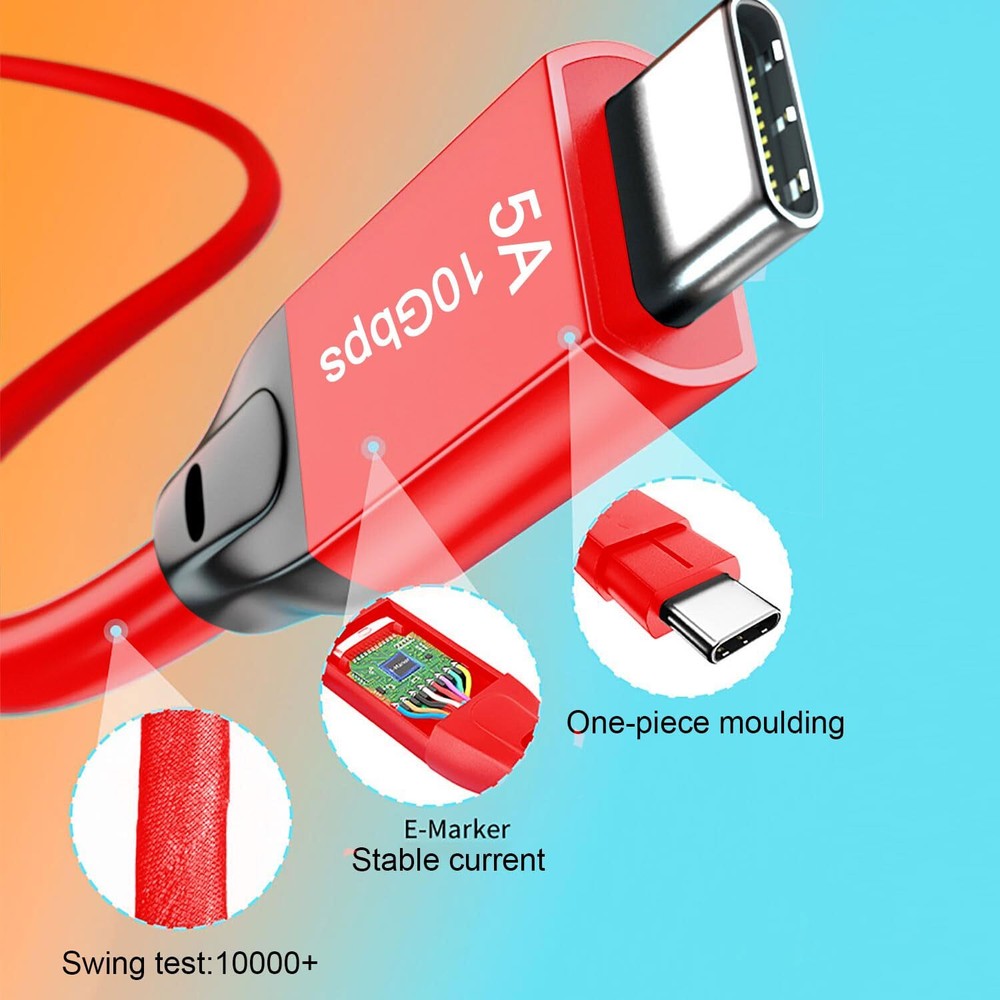 Grtoeud USB C to USB C 3.1 Cable 10FT, 10Gbps USB 3.1 Gen 2 Cable, 4K@60Hz Monitor Cord and 100W Fast Charging with E-Mark for Thunderbolt 3/4, MacBook Pro/Air,iPad Pro,Oculus, SSD,Galaxy S23(Red) USB 3.1 Gen 2 Cable 10FT Red Spec: USB Standard: The Latest USB 3.1 Gen 2 Type C Charging: 100W fast charging(Max 20V/5A) Data sync: Up to 10Gbps Resolution: 4K@60Hz, 2K@165Hz 10Gbps SuperSpeed Data Transfer The USB 3.1 cable fully complies with USB 3.1 Gen 2 standard, it offers up to 10Gbps SuperSpeed data transfer with Thunderbolt 3/4 External SSD Drive, just transfer large files in seconds. 4K Video Output USB C Cable Offer up to 4K@60Hz video output function from USB C laptops to USB C display screen or monitor, seamless streaming without any blur or distortion. Enjoy movies at home and work efficiently in the office. Compatible Devices(Most USB-C devices): MacBook Pro 2020 / 2019 / 2018 / 2017 MacBook Air/ iMac iPad Pro 12.9¡± 5th / 4th / 3rd iPad Mini 6, iPad Air 4 Samsung Galaxy S23 / S22 / S21 / S20 / S10 / S10E / S10+ Samsung Galaxy Note 10 / Note 9 / Note 8 Huawei MateBook X Pro / 13 / D / E Lenovo Yoga 900, Yoga 720 Surface Go HP Spectre / Pavilion LG G6 / G5 / V20 Moto G9 Plus / G8 OnePlus 9 Pro / 9 / 8T GoPro Hero 8, Camera Osmo Pocket / DJI Drone Controller PlayStation 5 Controller / Xbox Controller / Luna Controller / Google Stadia Controller USB-C charger, Oculus Quest 2, VR, Nintendo Switch SSD Hard Drive, PD Docking Station, USB C Hub Important Notes: 1.To ensure the speed of charging your device, please use the original USB C wall charger for optimum performance. 2.This is USB C to C 3.1 Gen 2 Cable, fully compatible with USB C 3.1 Gen 2 Port and Thunderbolt 3/4 Port. 3.The video function only works for those devices whose USB-C port supports DP Alt Mode. 【4K@60Hz Video & Audio Output】The cable supports full 4K 60Hz video. It's ideal for connecting your docking station or laptop to a monitor. Ideal accessories for your USB C devices for work, home use, business trip and more. (NOTE: The video function works for those devices that the USB-C port support DP Alt Mode.) 【10Gbps Data Transfer】The usb c 3.1 cable supports up to 10Gbps data transfer speed, which is twice the speed of USB 3.1, transferring an HD movie in just seconds. Note: Device requires USB 3.2 function when using 20Gbps tranfer speed. The actual data transfer denpens on the size and type of files. 【10FT USB-C 3.1 Cable】The USB Type-C to USB Type-C Cable with E-Mark Chip support up to 100W fast charging. Make it a perfect choice for office/home/school and almost all places you might use your Type-C port Monitor, laptop, tablet or phone. 【Wide Comaptiblity】Compatible with the latest iMac, MacBook, iPad Pro 12.9'' /11'', iPad Mini 6, Samsung Galaxy S23/S22/s21/Note 10, LG, Oculus Quest 2, Nintendo Switch, Osmo Pocket, tethering, and other newly launched USB-C smartphones/laptops/tablets/cameras/gaming device. If you are not sure whether your device will work with this USB-C 3.1 Gen 2 cable, please contact us and we will help you. 【What You Get】1 x USB-C 3.1 Gen 2 Cable(10 ft) Red, 18-Month Worry-free warranty, and friendly customer service. If you have any issues about this item, please feel at ease to contact us by Amazon message. And we will solve the issues for you within 24 hours. Shipping from the USA All of our products are shipped from the USA, ensuring quick delivery to your destination. Payment We offer the following payment methods: PayPal, credit card, bank transfer, and eBay's secure payment system. Free Shipping & Free Returns Shipping within the USA is FREE. Additionally, any return is absolutely free for you. Risk-Free Purchase You have the option to return an item within 30 days without any justification. We cover the return shipping costs! Fast Shipping We ship immediately upon receipt of payment. Generally, the package is delivered within 2-3 days in the USA. If it takes longer, we will contact you. Quality and Costs Made in Europe, USA, China No customs fees or additional charges Total satisfaction guarantee Invoice with declared VAT available upon request in .pdf format Feedback Your feedback is very important to us. After you pay for your purchase, you will automatically receive positive feedback from us.