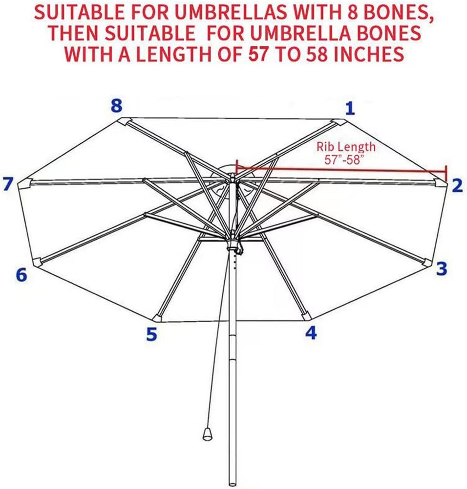 Product Description 10Ft 6 Ribs/8RIBS Replacement Patio Umbrella Canopy, Outdoor Umbrella Replacement Top Sun Shade Cover UV 50+ for Banana Umbrella Middle Column Umbrella In Garden, Patio or Sand 【9ft Universal Replacement Umbrella Canopy】change your old canopy with a new replacement umbrella canopy, also new color for good mood to brighten up your day 【WATERPROOF, ANTI-UV Patio Replacement Parasol Canopy】Made of 100% Oxford cloth, UV50+ protective umbrella canopy, effectively blocking harmful ultraviolet rays, color fastness reaches European standard level 5, which is more waterproof and durable 【Fit for Various Materials of Umbrella Frames】Wooden, Steel and Aluminum Umbrella Frames for garden, terrace, backyard, swimming pool side, deck, beach umbrella 【UNIQUE VENTED DESIGN】The vents at the top can help air flow, keep you cool, and protect the parasol from being pulled up by the wind for stability 【EASY TO INSTALL】Simply unscrew the parasol's top cover and remove the existing canopy, then screw the parasol's 8 ribs into the replacement canopy's 8-rib pockets. When you're done, screw the canopy back onto your parasol to secure the canopy in place About Us We are a reputable seller with many years of experience selling on eBay. Our goal is to provide high-quality products and excellent customer service. Shipping Items will be shipped within 1-3 business days when we received payment. (Orders are not processed on weekends & holidays) Tracking information will be sent once item is shipped. Delivery time depends on destination and other factors Item is shipped to ebay address. Leaving correct address can minimize delay. For international shipping and shipping to Guam, Hawaii and Alaska, Please contact us before placing the order. International buyers please note: Import duties, taxes and charges are not included in the item price or shipping charges. These charges are buyer’s responsibility. We will try our best to reduce the risk of the custom duties. Local pick-up is unavailable at the moment. Contact Us We reply any email messages within 1 business / working days(off-duty at weekend). If you do not get a response from us, then please check your junk or spam mailbox. Our Business hours: Mon-Fri 9:00-18:00, UTC/GMT +8 hours. Please contact us either by clicking "contact seller" in the "purchase history" section or simply click "ask a question" at the bottom of this page. If you are unsatisfied with our item or service, please contact us before leaving any feedback. We are committed to resolve all issues in a friendly and satisfactory manner.