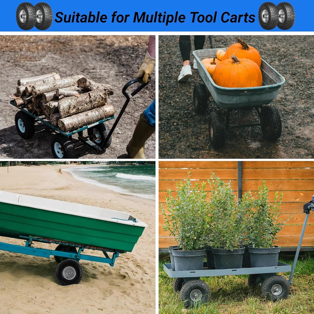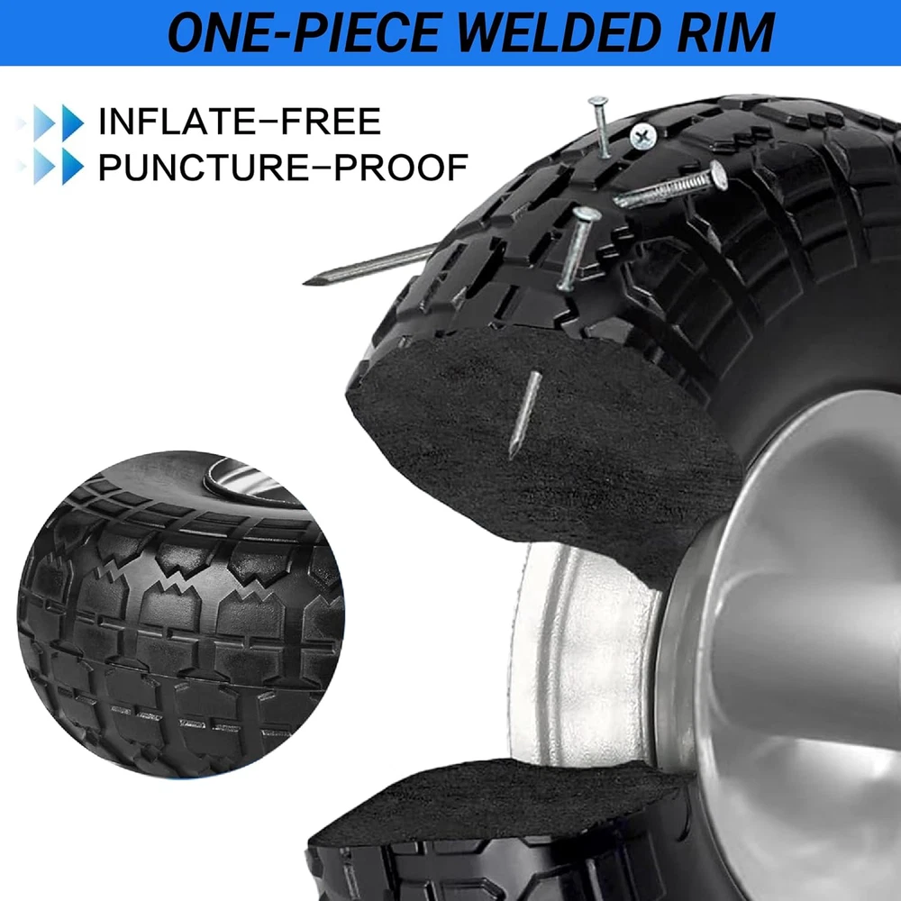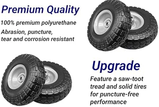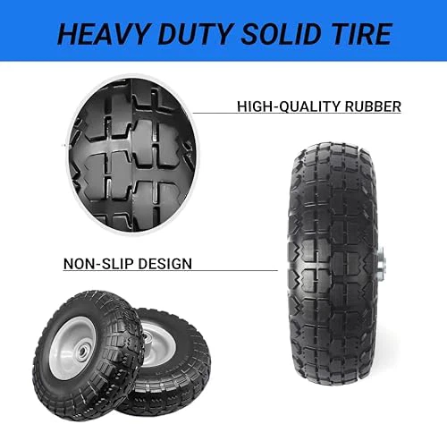 Fast Shipping Great Customer Support Satisfaction Guaranteed DESCRIPTION Shipping Shipping Shipping All domestic packages are shipped for Free (Unless other shipping method was selected during the checkout) We ship within two business days of payment, usually sooner Standard FREE shipping takes between 3-5 business days Expedited shipping takes between 2-3 business days Overnight shipping takes between 1-2 business days We do not accept P.O. BOXES - PLEASE PROVIDE A PHYSICAL ADDRESS We Ship Globally using ebay's GSP, the item is sent to a logistic center in KY and shipped from there to the rest of the world. International customers are responsible for all duties and taxes Contact your local authority for questions related to the amount of duties or taxes you will be responsible for Return Return Return In the event that you would like to return your purchase, we allow returns that are processed within the defined return date (the return date is to be found in the return policy/shipping and handling section) Please contact us for a return authorization and the return shipping address. Please contact us for a Return Merchandise Authorization (RMA) number. We advise you to use a reputable carrier service when returning your goods. Please pack all returns appropriately. We ship globally Via eBay's global shipping program (GSP). Thus we don't cover returns for items shipped globally. Buyers returning such items will be refunded ONLY for the item's cost and not for the shipping. please check the Voltage information and make sure it matches the one in your country. In case it's not stated in the description, do ask us. Payment Payment Payment PayPal is our preferred method of payments it's the quickest, easiest and most secure way to pay for your goods or services online. PayPal offers buyer and seller protection should there be a problem. If you do not have a PayPal account, to get started and buy your first item with us is very easy. Simply click on the 'Buy It Now' button and follow the eBay checkout steps. Select PayPal as the payment method you then will be given the chance to enter your card details in to PayPal's secure checkout in order to pay for your order. Once the payment has been made, you will then be given the opportunity to make your own PayPal account to make paying for your items in the future very easy. Should there be a problem with payment please do let us know. Feedback Feedback Feedback Customer satisfaction is very important to us. If you have any problem with your order,please contact us and we will do our best to make you satisfied, please do not leave a negative feedback before we resolve your problem. We guarantee that your issue will be solved quickly. As long as you are happy with your purchase of , please leave us a positive feedback. Your feedback is very important to us it affects our search placement on eBay. We will leave a positive feedback for you in return automatically once we receive your feedback. Contact Us Contact Us Contact Us If you have any queries, please contact us via ebay. We usually respond within 24 hours on weekdays. Thank you for visiting our ebay store! Specifications: 4.10/3.50-4 inch solid tire, tire diameter: 10 inches, tire width: 3.2 inches, axle hole diameter: 5/8 inches, single wheel dynamic load: 220 pounds, (Note: Do not statically load for a long time.) Longevity: With proper care, solid airless tires can last longer than conventional tires, making them a cost-effective choice over time despite potentially higher initial costs. Multiple cart compatibility:These 10-inch solid replacement wheels with 5/8-inch bearings are versatile, suitable for a range of carts including garden yard carts, handcarts, warehouse carts, and generator wheels. Anti-slip tread:Serrated design and double-sealed bearings, along with a scientifically engineered structure and high-quality metal, significantly enhance its load-bearing capacity, ensuring you can effortlessly complete tasks. Buy with confidence: If you are not satisfied for any reason, please contact us and we will help you exchange or return and get a refund. 10-Inch 4.10/3.50-4 Tire and Wheel Flat Free, Heavy Duty Solid Replacement Tire Click here to see description Fast Shipping Great Customer Support Satisfaction Guaranteed DESCRIPTION Shipping All domestic packages are shipped for Free (Unless other shipping method was selected during the checkout) We ship within two business days of payment, usually sooner Standard FREE shipping takes between 3-5 business days Expedited shipping takes between 2-3 business days Overnight shipping takes between 1-2 business days We do not accept P.O. BOXES - PLEASE PROVIDE A PHYSICAL ADDRESS We Ship Globally using ebay's GSP, the item is sent to a logistic center in KY and shipped from there to the rest of the world. International customers are responsible for all duties and taxes Contact your local authority for questions related to the amount of duties or taxes you will be responsible for Return In the event that you would like to return your purchase, we allow returns that are processed within the defined return date (the return date is to be found in the return policy/shipping and handling section) Please contact us for a return authorization and the return shipping address. Please contact us for a Return Merchandise Authorization (RMA) number. We advise you to use a reputable carrier service when returning your goods. Please pack all returns appropriately. We ship globally Via eBay's global shipping program (GSP). Thus we don't cover returns for items shipped globally. Buyers returning such items will be refunded ONLY for the item's cost and not for the shipping. please check the Voltage information and make sure it matches the one in your country. In case it's not stated in the description, do ask us. Payment PayPal is our preferred method of payments it's the quickest, easiest and most secure way to pay for your goods or services online. PayPal offer