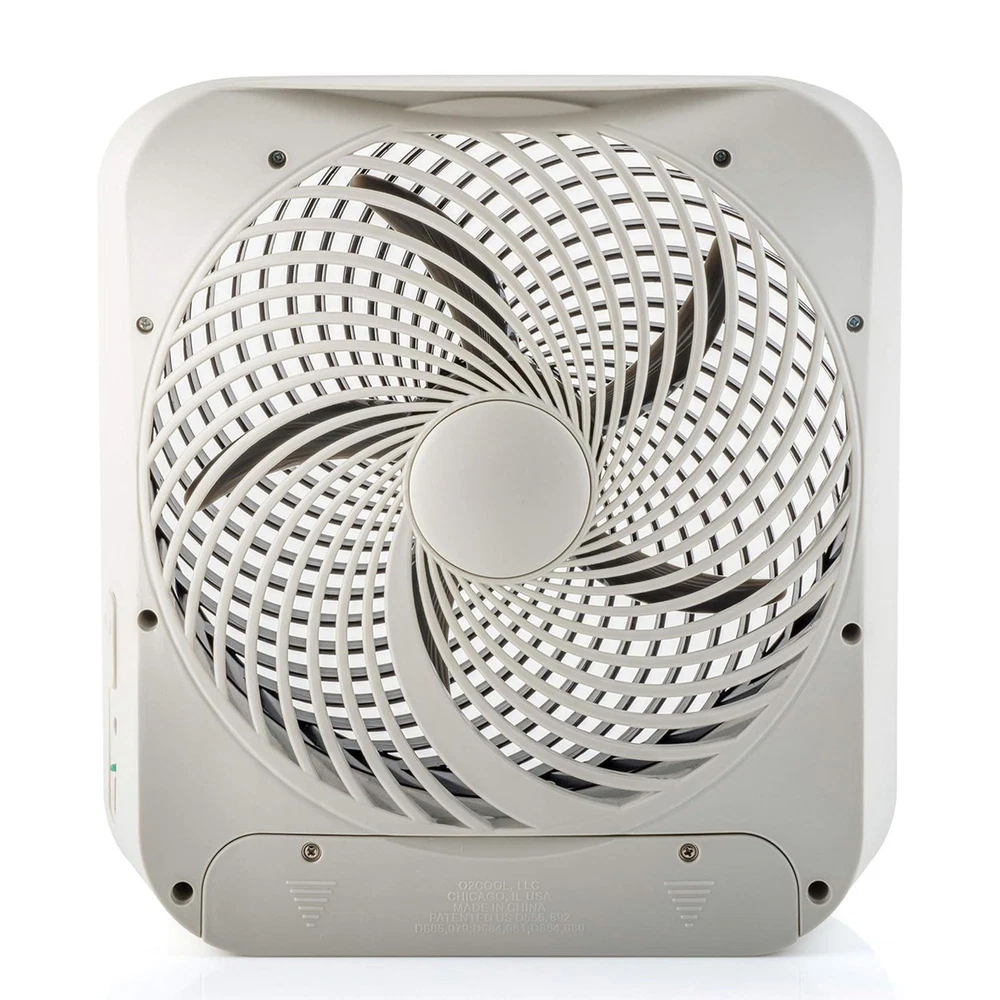 BATTERY-OPERATED POWERFUL PORTABLE FAN : With ’s 10" popular Fan, you can cool off wherever you are. Perfectly sized, it is easy to transport with its convenient built-in handle DURABLE CONSTRUCTION: This desk fan is durably crafted using sturdy plastic construction for long-lasting use with a patented fan blade design which extends battery life while maximizing airflow -SPEED OPERATION: Featuring a powerful 10-inch blade, this box fan offers high and low speeds for your comfort. Both settings deliver refreshing air with minimal noise to prevent distractions EASY TO USE: Position table fan face down, slide out the battery door and insert 6 D batteries following (+/-) marks. To operate fan using AC power (120-240 VAC, 50-60 Hz), use supplied adapter only DUAL POWER SOURCES: For added convenience, this desktop fan runs on 6 D batteries (not included) or plug in using the included adapter. Inserting the adapter disconnects the batteries from the circuit