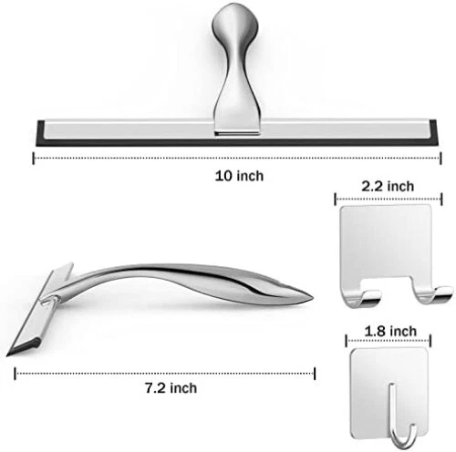 Free eBay listing template designed by dewiso.com All-Purpose Stainless Steel Shower Squeegee for Shower Glass Door with 2 Adhesive Hooks, Bathroom Cleaner Tool Household Window Mirror Squeegee , Cleaning Tile Wall, Car, 10 Inch Silver FREE AND FAST SHIPPING! About this item 【Streak Free & Squeak Free】: Docrok squeegee for shower glass door will effortless remove the water drops, soap scum and other sources of buildup of your shower glass door cleaner and other surfaces with just a few wipes. Getting your cleaning activities done fast and easy with no streak and squeak. 【Sturdy & Durable】: Made of 100% rust-resistant stainless steel and premium silicon blade, our shower squeegeee, shower door squiggy with exquisite craft ensure the durability and long lasting use for your daily household cleaning activities. A must have window squeegee for window cleaning, bathroom squeegee for shower glass doors. 【Ergonomic Design】: Features an ergonomic structure and precise cut silicone blade, this shower glass squeegee car squeegee provides you a comfortable anti-slip grip to efficiently clean your tile show walls with minimum time and effort. 【All-Purpose Squeegee】: This all-purpose squeegee is great for shower glass doors, tile shower walls, car windows, mirrors and any other smooth and flat surfaces. A must have cleaning tool for indoor and outdoor use. 【Easy Storage & Use】: Comes with 2 kinds of waterproof adhesive hooks which can be attached to any smooth surface, you can hang the squeegee on the shower walls, kitchen and any other places for easy reach and use. Product We offer a 30-Day Return Policy on items which you are not completely satisfied with. You have the option for a full-refund or an exchange of the item. No returns are available on items shipped outside of the US . Shipping We offer Free Shipping to the US and ship within 2 business days of payment, usually sooner. We use UPS express shipping. That's why your products are usually delivered within 3 days . Contact We try our very best to make sure every customer is completely satisfied. If there's a problem , message us! We're happy to help. 24/7 live chat available.