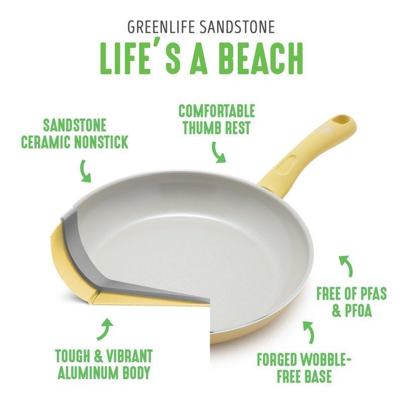 You may also like Non-Stick Aluminum Griddle Pan Heavy Duty Dishwasher Safe Metal Utensil Safe New 29.4 USD 30.95 USD Free shipping 5% off Pre-Seasoned Cast Iron Skillet 14 Inch Versatile Cooking Durable Oven Safe New 34.25 USD 36.05 USD Free shipping 5% off Nonstick Deep Fry Pan 11 Inch W/ Lid Bakelite Handle Easy Clean Oven Safe New 52.65 USD 55.42 USD Free shipping 5% off Non Stick Frying Pan 14" Family Skillet Dishwasher Safe Metal Utensil Safe New 37.15 USD 39.11 USD Free shipping 5% off Cast Iron Pizza Pan Preseasoned Skillet Multi Use Non Stick Kitchen Cookware 36.71 USD 38.64 USD Free shipping 5% off 11 Inch Non-Stick Stainless Steel Induction Deep Sauté Pan W/ Glass Lid New 52.99 USD 55.78 USD Free shipping 5% off Tri-Ply Stainless Steel Deep Fry Pan Induction Compatible W/ Glass Lid 4L New 53.47 USD 56.28 USD Free shipping 5% off Nonstick 10" Supreme Fry Pan All Cooktops Aluminum & Stainless Steel Easy Clean 44.93 USD 47.3 USD Free shipping 5% off Nonstick 5 Qt Saute Pan Eco-Friendly Induction Compatible Easy Clean Cooking New 28.46 USD 29.96 USD Free shipping 5% off 10 In Deep Frying Pan W/ Glass Lid Dishwasher Safe Durable Cooking Aluminum Red 47.5 USD 50.0 USD Free shipping 5% off Prairie Signature Cast Aluminum 12" Fry Pan W/ Nonstick Coating & Floral Accent 41.5 USD 43.68 USD Free shipping 5% off Toxin Free Nonstick Ceramic Frying Pan Skillet Durable Diamond Infused Cookware 47.4 USD 49.89 USD Free shipping 5% off The Greenlife Savory Ceramic Nonstick Yellow 10" open fry pan helps you get a grip? literally! Stay-cool Bakelite handles offer extra comfort that makes everyday cooking easier than ever. Best of all, our healthy ceramic nonstick coating releases even the stickiest foods effortlessly and wipes clean in seconds, no soaking required. The GreenLife Savory Yellow 10" frying pan brings diamond-powered performance to any stovetop. This diamond-reinforced ceramic nonstick coating delivers long-lasting performance and effortless cleaning and it? s made without PFAS, PFOA, lead, and cadmium to give you a better start for all your meals. The aluminum body adds a sleek, streamlined style to any kitchen, while the matching soft grip handle keeps things cool when you? re cooking. Reinforced with a wobble-free base for extra strength and even heating, this pan is safe for all stovetops except induction and oven safe to 350? F. Dishwasher safe. You may also like 2-in-1 Food Masher & Vegetable Peeler Nonstick Dishwasher Safe Kitchen Tool New 19.47 USD 20.49 USD Free shipping 5% off Kitchen Stainless Steel Vegetable Peeler Ergonomic Soft Grip Handle Easy Storage 17.54 USD 18.46 USD Free shipping 5% off Galvanized Steel Round Wash Tub Planter Bucket Rust Resistant Heavy Duty 17Gal 57.7 USD 60.74 USD Free shipping 5% off Perfect Peel Apple Peeler Slicer Corer Easy Clean Suction Base Kitchen Gadget US 24.99 USD 26.3 USD Free shipping 5% off Electric Tea Kettle 1.8L Half Circle Stainless Steel W/ Auto Shut Off Cordless 44.17 USD 46.5 USD Free shipping 5% off Electric Glass Kettle 1500W ProntoFill Fast Boil Auto Shut-Off LED Indicator New 25.66 USD 27.01 USD Free shipping 5% off Lightweight 15qt Pail & Strainer Combo Durable Easy Clean Storage Solution New 29.45 USD 31.0 USD Free shipping 5% off Cool Mist Humidifier 250 sq ft 15 Hour Run Time Whisper Quiet Auto Shut Off New 58.49 USD Free shipping Manual Potato Peeler Rotato Vegetable Fruit Peeling Machine W/ Spare Blades New 35.32 USD 37.18 USD Free shipping 5% off 4 in 1 Ultrasonic Cool Mist Humidifier Sound Machine Large Room Aromatherapy New 56.67 USD 59.65 USD Free shipping 5% off Ultrasonic Cool Mist Humidifier Auto Shut-Off Nursery Bedroom Allergy Relief New 46.66 USD 49.12 USD Free shipping 5% off Cast Iron Apple Peeler Clamp Hand Crank Peeling Coring Slicing Kitchen Tool New 53.76 USD 56.59 USD Free shipping 5% off