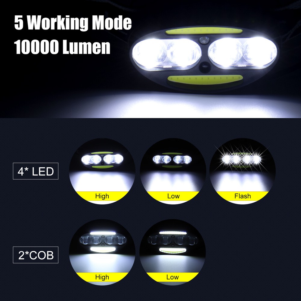 This headlamp is a game-changer! Super bright with the 4 LEDs + 2 COB chips, and the motion sensor is so convenient. Love that it’s USB rechargeable and the angle adjusts for any task—perfect for work, camping, or emergencies. No more fumbling with switches since it turns on/off automatically. Super lightweight and comfy for long wear. A must-have for hands-free lighting!