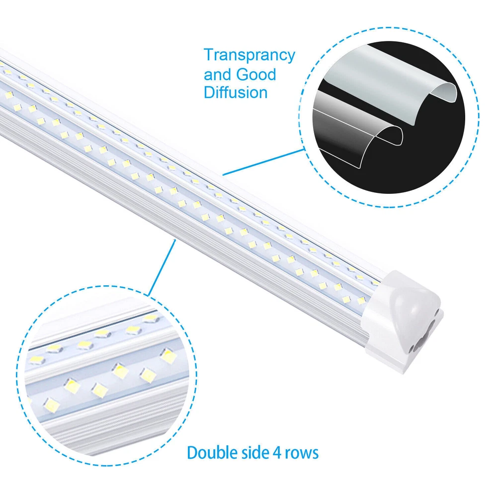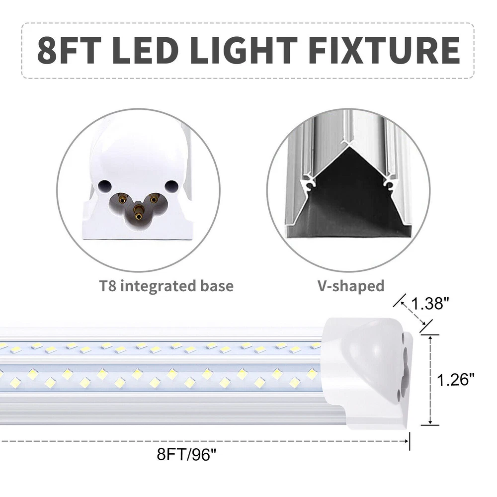 Specification: Model Name: T8 Integrated V Shaped LED Tube Length: 8FT Power: 8FT 120W LED Source: 2835SMD Lumens: 14400 Lm Base Type: Integrated (With Bracket) Beam Angle: 270 Degree Voltage: AC85-277V Housing material: Aluminum Drive: Built-in drive CRI: > 80 Power factor:>0.90 Operation temperature: -20C to 50C Life: 50,000 hours Frequency: 60Hz to 50Hz Warranty:3 Years PC cover: Clear Color temperature: Cold White (6000K-6500K) PACKAGE INCLUDE: 10pack T8 8ft 120W LED shop light Fixtures Dust Caps Connectors Screws Mount Clips Power Cables (1ft / 12inch) Connectors cables (4ft / 48inch) 10PACK LED Shop Light Fixture 8FT T8 LED Tube Light 120W 14400LM Garage Light Specification: Model Name: T8 Integrated V Shaped LED Tube Length: 8FT Power: 8FT 120W LED Source: 2835SMD Lumens: 14400 Lm Base Type: Integrated (With Bracket) Beam Angle: 270 Degree Voltage: AC85-277V Housing material: Aluminum Drive: Built-in drive CRI: > 80 Power factor:>0.90 Operation temperature: -20C to 50C Life: 50,000 hours Frequency: 60Hz to 50Hz Warranty:3 Years PC cover: Clear Color temperature: Cold White (6000K-6500K) PACKAGE INCLUDE: 10pack T8 8ft 120W LED shop light Fixtures Dust Caps Connectors Screws Mount Clips Power Cables (1ft / 12inch) Connectors cables (4ft / 48inch) Key Benefits: 270 Degree angle design, which shed more light on your products to make much brighter Double row LED, which give more light output Clear cover, which emits more light than frosted cover Cut Energy Costs by 60-80% Lamp Lifespan: 50,000 hrs Bright Light output Mercury free, No Health Hazards Easy Installation: 1. Remove Old Fixture (If needed) 2. Install Mounting Clips to Doors 3. Snap LED Tube Light into Mounting 4. For multiple lights installation, Connect other end of the Tube light output to second light input and so on. With one power source, it can connect 2 Tube lights utmost for 8FT Tube. 5. Connect to Power Source Application / Usage: Reach-In Coolers / Freezers Multi-Deck Cases , Bakery Display Cases Meat Coolers , Industrial / Medical Refrigeration Show Case , Super Market, School, Factory, Residential , Commercial Bus, shuttle, railcar passenger interiors,Places where need energy-saving and high-color rendering index lighting Payment Delivery details Terms of sales About us Contact us Payment 1.We only accept payment by Paypal. 2.If you pay by paypal with E-check, it normally takes 5 business days to clear, Once your E-check payment clears, your item will be dispatched within 1-2 working days. 3.Payment must be received within 7 days after the auction ended. Delivery details 1.All orders ship within 24 hours after receiving your payment. 2. Fedex shipping from our US warehouse, takes about 3-5business days for delivery. 3.Please verify your address during checkout. We are not responsible for any wrong or undeliverable addresses. Terms of sales We strive to ensure 100% satisfaction for each and every one of our customers. we offer a 30-day 100% money-back guarantee on all eBay orders. If your item isn't just as you wished, simply send it back to us and we'll refund or replace your item. Please note that all returns must be authorized by our Customer Service department. please contact us though message first if you have any problem . About us 1.Our working time is Monday to Friday. 9.30-18.30 BeiJing time am. 2.We will reply you within 24 hours(1work days). 3.We are always been trying to provide best service and reliable products for every customer. Contact us 1. If you are dissatisfied for any reason, please do not be quick to leave negative/neutral feedback. We work hard to make sure EVERY CUSTOMER 100% SATISFIED and resolve any problem for you and always leave positive feedback to all our customers. 2. If you are satisfied with the product you received,please leave us positive feedback and 5 scores DSR.