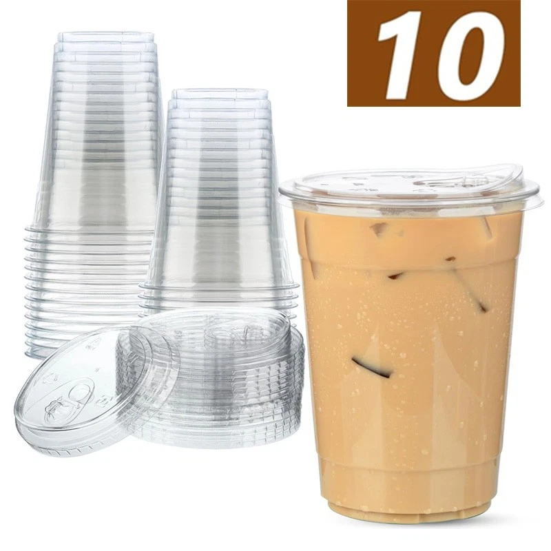 10PCS 16oz Clear Plastic Cups with Lids, Disposable Cups for Iced Coffee Bubble