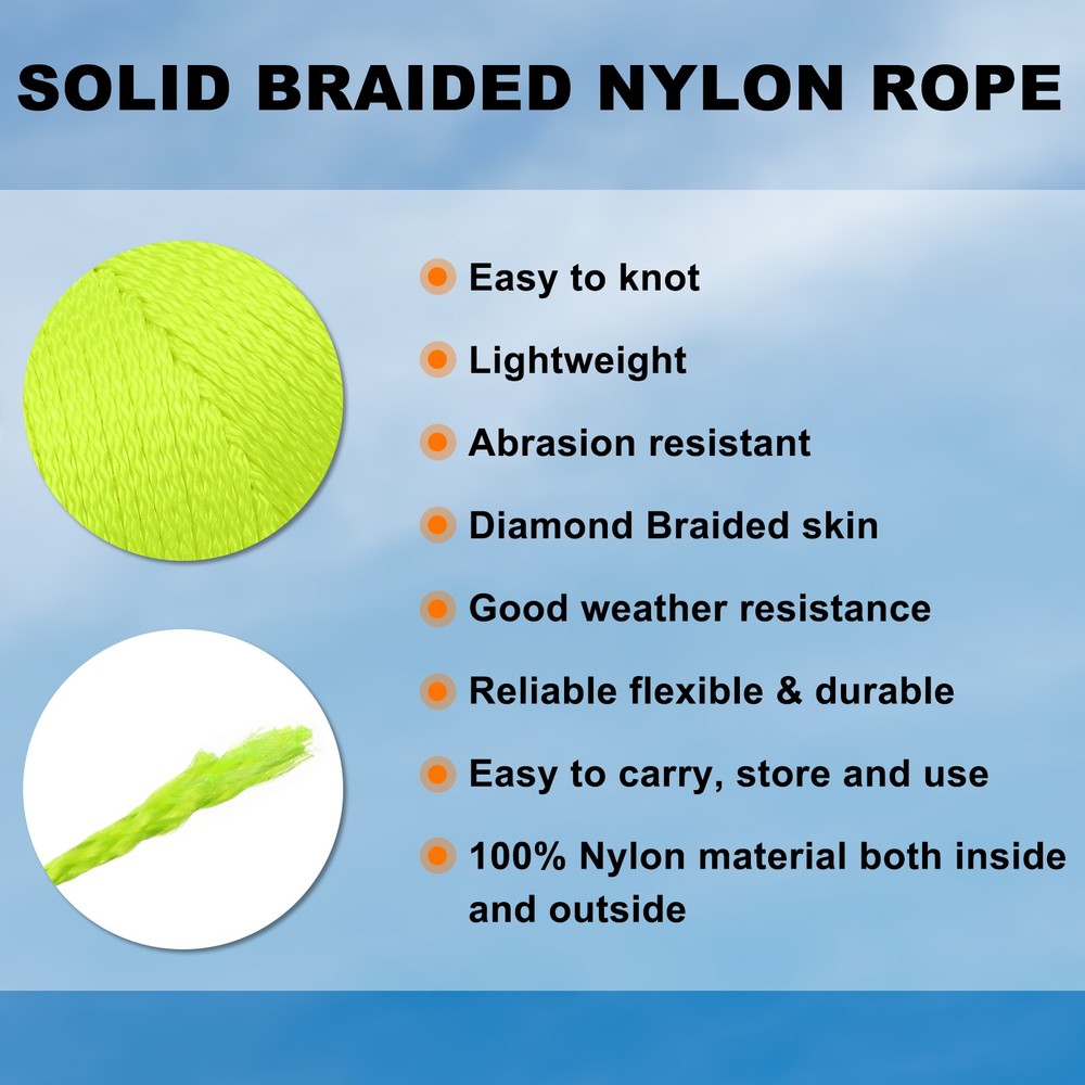 10PCS 3/50 Inch 1000 Ft Yellow Nylon Utility Rope for Flag Poles