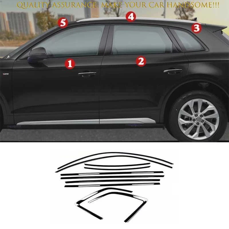 10PCS A For Audi Q5 SQ5 2020-2024 Black Titanium Windows Sill Molding Strip Trim P roduct D escription The Product is made with premium quality Stainless Steel which is durable, waterproof and long lasting. It comes with double side tape on the back for you to simply stick on the original panel. This eye catching cover will give your Car an awesome racing appearance instead of the tedious look. It is designed for easy installation. Directly peer off the tape and paste the Product on your car and done. Fitment For Audi Q5 SQ5 2018-2024 Please make sure your car is the same as the picture we show you before purchase. Features 100% brand new, shown as pictured Color: as picture Material: made of High quality Stainless Steel With double side automotive tape on the back Perfect match for the original equipment Made in an ISO 9001 facility to ensure good quality Waterproof and never fade, wear-resisting & scratch-resistant Very light weight, wear-resistant, dirt-resistant Protect the installed area from scratches Decorate car appearances, make your car particular and unique Easy installation, simply peel and stick on Surface must be clean and dry prior to adhering