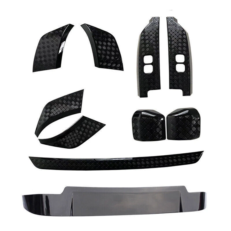 Product Details Fits For: Land Rover 2 Door Defender 90 L663 2020-2023 Material: High Quality ABS Plastic Quantity: 1PC Rear Spoiler Wing + 9PCS Body Molding Trims Color: Gloss Black Installation: With sticker or buckles on back, easy installation Package Included 1PC Rear Spoiler Wing 1PC Rear Door Plate 2PCS Front Trim Cover 2PCS Side Trim Cover 2PCS Rear View Mirror Cover 2PCS Rear Lamp Decorative Trim Shipping Order will be shipped within 5 days upon payment. We use expedited shipping like Fedex, UPS, TNT, Aramex, it takes 7-10 days to arrive, but the specific delivery time depends on destination and so on. Customs Duties & Taxes May be applied in some countries, these additional charges are for the buyer's account. Payment It is great if you could pay for your order securely with Paypal. For other payment options please help contact with us, we will provide help. Return Policy This product comes with 30-Days Money Back Guarantee. We guarantee 1: 1 replacement for the defective goods. Customer Service If you do not receive your item or receive wrong item ,please get contact with us,We will arrange a full refund or replacment. If you have an issue with the product, fitment or something else, please contact us, we reply to all messages or emails within 24 hours and we always solve issues with our expert customer service team. About US We are committed to develop and supply good quality accessories for SUV and pick-up trucks. Our ] major products are cross bars, running boards, door sills, etc. With more than 10 years experience in this sector, our products sell to the worldwide.