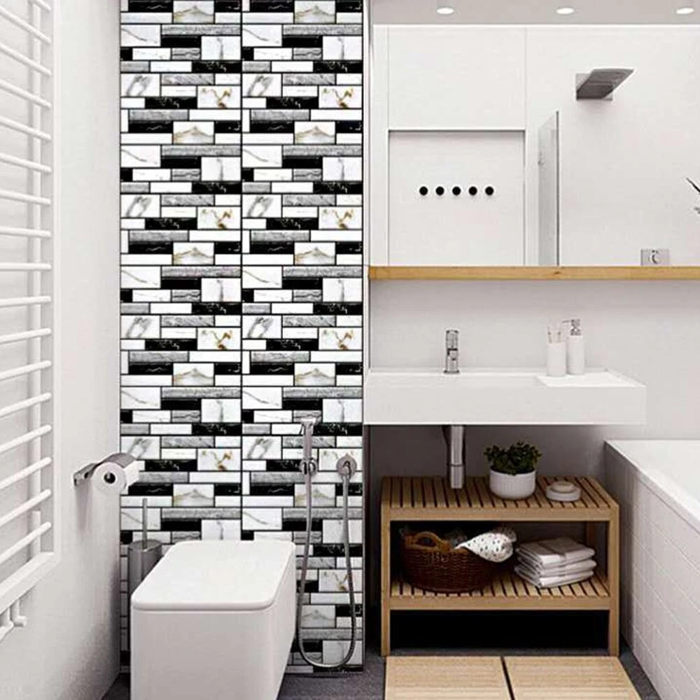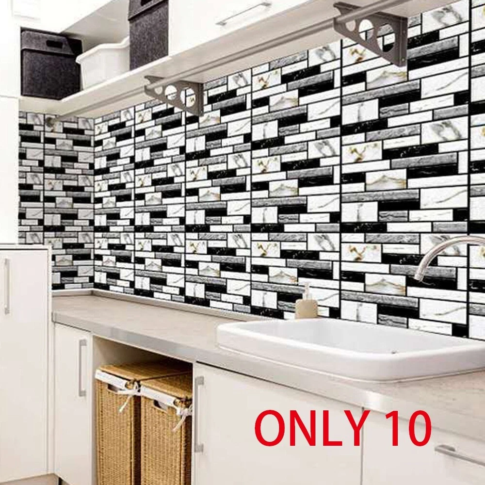 10PCS Self Adhesive Tile Wall Sticker Home Decor PVC Sticker Covers for1320 1: Three-dimensional decorative soft foam, anti-collision for children, care safe. 2: and environmental protection, non- odor-free, suitable for family safe home space. 3: lifelike, natural brick pattern effect, simple and modern style. 4: Free DIY, easy self-adhesive design, installation, casual collage, arbitrarily cut. 5: Compared wallpaper better noise reduction effect. Color: As Shown Material: PVC Package Contents: 10 x Self Adhesive Wall Sticker