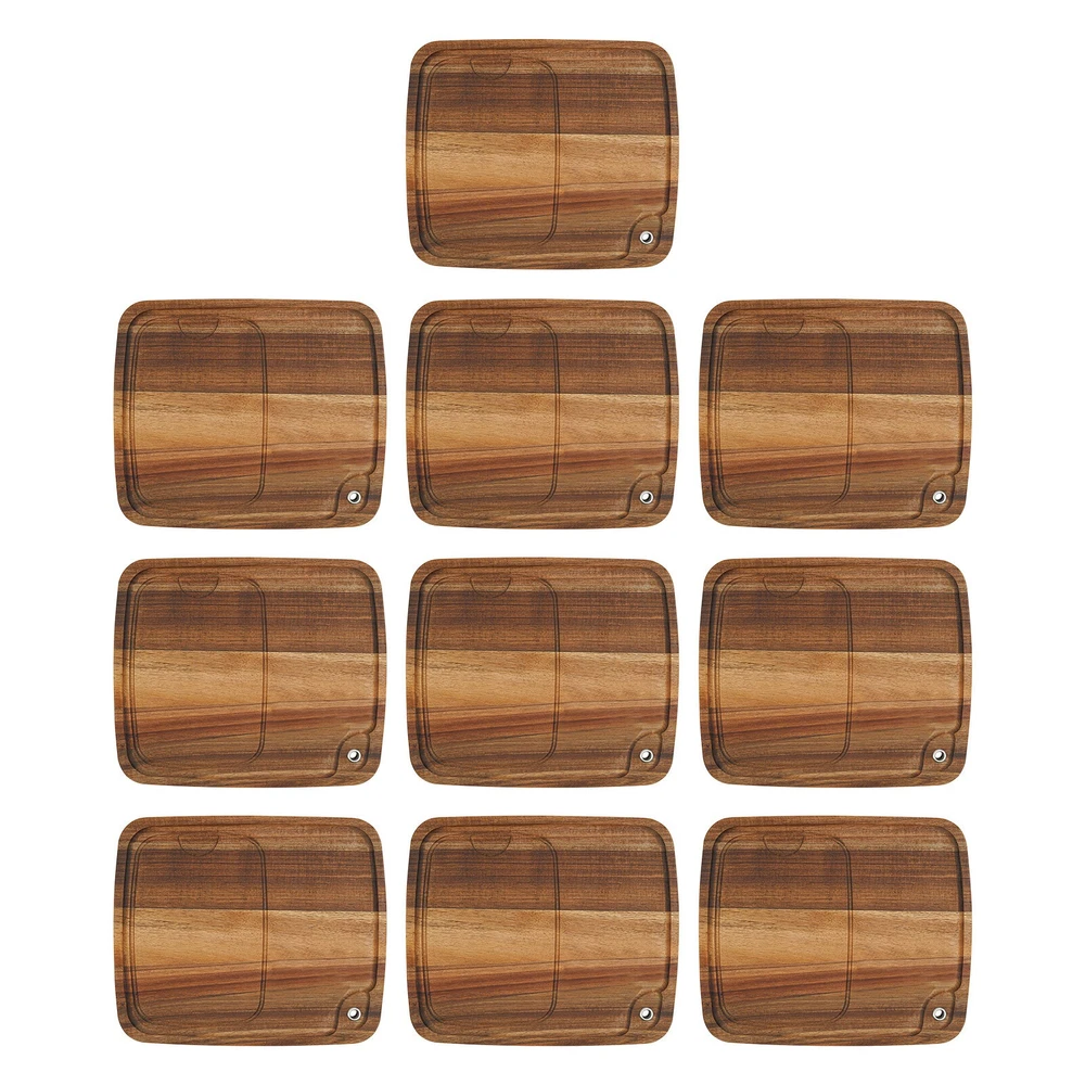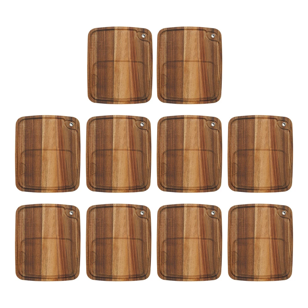 10PCS Wood Steak Plates with Juice Channel Acacia Wooden Steak Board Anti-mold? Welcome Description This steak plate is not only a practical kitchen piece, but also a work of art that blends aesthetics with functionality. Its unique and elegant appearance adds embellishments to the dining table and gives each steak placed on it a sense of dignity. Whether it is a family gathering or a formal dinner, this practical piece will make the dining experience more enjoyable and memorable. Key Feature High-class Material : Premium wood with an oil-coating treatment makes the product high in hardness, good anti-mold performance, healthy, environmentally friendly , and impact-resistant, which can ensure long-term use. Multi-functional: It can be used as a delicate cutlery directly on the table for diners to enjoy their meals, as a practical chopping board to add convenience to the cooking process, or even as a tray to conveniently transfer food from the kitchen to the dining room or outdoor picnic spot. Thoughtful Design: The plate features a convenient carving channel to collect steak juices, preventing juices from mixing with other foods. Suitable Size : The right size (12.99*11.02 inches) ensures that you have enough room to serve without worrying about overfilling it. The practical size adds to the ease and convenience of serving and eating meals. Set of 10: You'll receive 10 steak plates, enough to host a party or family dinner. They're enough to entertain guests and serve multiple delicious meals, experiencing the joy of sharing a meal with a large group of people. Easy Storage : Multiple plates are easy to stack for storage without taking up too much space, and the hanging hole design allows individual plates to be hung and stored when not in use, saving you valuable kitchen space. Easy Maintenance : Its smooth surface and simple construction allow for easily cleaning with a soft sponge or a dishwashing brush with gentle bristles (not included). Ideal Gift: With its beautiful appearance and practicality, it can be given as a great Christmas or housewarming gift for your family and friends! Ready to Use: This product does not require assembly, and you can use it directly after receiving it, which is very convenient and greatly saves your time. Details Rounded Edges: They not only care for your skin during use but also enhance the aesthetics of the product. The raised edges reduce the risk of items falling. Clear Wood Grain : The clear and delicate wood grain can add a rustic and elegant atmosphere to the product, and enhance the visual aesthetics. Application This product can be used as a dinner plate for steaks, as a tray for meats, fruits, vegetables, breads, and baked goods, and can also be used for cutting tasks. It is great for the kitchens, hotels, barbecues, restaurants, family gatherings, outdoor picnics, and more. Specification Material: Wood Color: Brown Shape: Rectangular Process: Oil-coating Recommended Uses For Product: Fruit, Cheese, Bread, Meat Mounting Type: Tabletop Assembly Required: No Number of Items: 10 Each Product Size: 33*28*1.5cm/12.99*11.02*0.59in Package Size: 35*29*17cm/13.78*11.42*6.7in Gross Weight: 3.5kg/7.72lbs Net Weight: 3.2kg/7.05lbs Package Included 10* Steak Plates Notes Please note that this product contains only 10 steak plates without other items. It is important to oil these pieces on a regular basis to preserve the natural luster and prevent cracking or warping. It is not recommended to use a dishwasher to clean this product. Please note that it has an odor after opening and needs to be dried out. Please do not soak in water. Prolonged soaking will cause the wood to warp. Please allow the slight color difference caused by the shooting light and 1-3cm error due to manual measurement, and make sure you do not mind before you order. Payment Delivery details Terms of sales About us Contact us Payment We accept ebay payment 。 Fees such as import duties, taxes are not included in the item price or shipping costs. These charges are the buyer's responsibility. Delivery details Shipping: 2-9 working days to: USA Terms of sales We maintain high standards of excellence and strive for hundred percent customer satisfaction. Feedback is very important to us. We hope that you contact us immediately before you give neutral or negative feedback, so that we can address your concerns. It is impossible to address issues if we do not know about them! About us Your satis faction is our ultimate goal. We work hard to earn your trust and future business. Our certified technicians have tested each item before shipping. The unit comes with 1 year limited warranty on all manufacturing defects. a) If you receive a defective item, you may return it or ask for a discount. Please contact us within 14 days after you receive the package. b) What you returned must be intact and in its original packaging as re? u. Customer is responsible for shipping costs of the returned item. c) We will cover the cost of shipping back t with the shipping rate indicated in the registration page. We will send you a new unit or refund the full payment you paid. Thank you. Contact us Business Hour Business Hour: Monday To Friday: 8:30 AM to 5:00 PM (Beijing China time) Due to time zones, our reply to your questions may not be immediately. But within above working time, we will reply your email within 24 hours. If it's non-workdays, please kindly be patient and wait till Monday. Please contact us with ebay message. Please feel free to contact us if you have any questions. Monday To Friday: 8:30 AM to 5:00 PM (Beijing China time) Due to time zones, our reply to your questions may not be immediately. But within above working time, we will reply your email within 24 hours. If it's non-workdays, please kindly be patient and wait till Monday. Please contact us with ebay message. Please feel free to contact us if you have any questions. shipping notice Can not ship to Puerto Rico,Alaska/Hawaii Feature 1 Nice 
