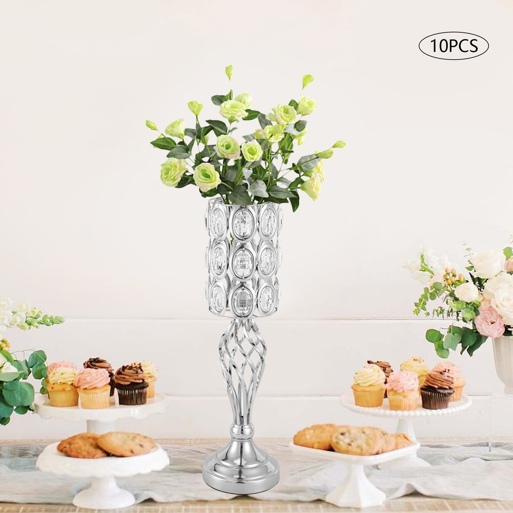 Package Included 10* 19.7"H Silver Wedding Flower Vases Application The wedding flower vase is ideal for weddings, celebrations, party scenes, birthdays, aisle road lead, and event decorations. It is also suitable for home décors, living rooms, dining rooms, parlors, coffee shops, bars, hotels, etc. Specifications Material: Iron Surface Treatment: Electroplating Color: Silver Style: Nordic, Romantic Mounting Type: Free-standing Assembly Required: Yes Number of Vases: 10 Net Weight: 6kg/13.23lbs Gross Weight: 11kg/24.25lbs Base Diameter: 14cm/5.5inch (Each ) Top Diameter: 12cm/4.7inch (Each ) Top Inner Diameter: 5.5cm/2.16inch (Each ) Overall Height: 50cm/19.7inch (Each ) Package Size: 61*31*40cm/24*12.2*15.75inch Notes Please note that candles and flowers are not included. Welcome Description Decorating the wedding site with fresh or artificial flowers to create a romantic atmosphere is essential to an ideal wedding. Our wedding flower vases, which have crystal beads made by exquisite crafts, elegant appearance, and high practicality, can spice up your wedding decor with flowers, wax, or candles. It is also suitable for celebrations, party scenes, birthdays, aisle road leads, event decorations, etc. Key Features Solid and Durable: Our flower vases, adopting premium iron with smooth connection, have solid construction and are durable. You can use them repeatedly. Exquisite Workmanship: This product adopts an exquisite electroplating treatment and a manual fixed knitting process, making it high-quality and delicate. An Eye-catching Backdrop: With the sunlight or lamplight shining on the silver vase, it can add a sparkling glow to dull wedding décor, and impress your guests with the eye-catching backdrop. Various Decoration Methods: You can put fresh flowers, artificial flowers, wax, or flameless pillar candles on the top round plate as a flower centerpiece or a candle holder for tables, especially for weddings, to create a romantic atmosphere. Delicate Gift: Because of its exquisite crafts, elegant appearance, and high practicality, the flower vase is a fantastic gift for housewarming, weddings, and other festivals. Elegant Appearance: The unique hollow design with intersecting lines, together with exquisite surface and casual outlines which is like a romantic lingering, makes the table decoration more attractive. Easy to Assemble : This set pillar flower vase for wedding table centerpieces is made from a few different segments. With its simple structure and equipped accessories, you can assemble it easily and quickly. Easy to Clean: Due to iron crafts and an electroplating treatment, you can use a soft cloth to clean and dry, which is simple and labor-saving. Details Stable Stand Base: Each vase is equipped with anti-slip pads, together with the round structure to make the whole vase more stable, preventing it from toppling and scratching. Top Hollow Holder: The top diameter of the horn holder is 12cm/4.7 inches, which can place more large candles, flowers, and artificial flowers without scratching your hands. Crystal Beads: The top holder is hand-strung with crystal beads, making it appear shimmering, appealing, and unique, and can create a dreamy atmosphere. Application The wedding flower vase is ideal for weddings, celebrations, party scenes, birthdays, aisle road lead, and event decorations. It is also suitable for home décors, living rooms, dining rooms, parlors, coffee shops, bars, hotels, etc. Specifications Material: Iron Surface Treatment: Electroplating Color: Silver Style: Nordic, Romantic Mounting Type: Free-standing Assembly Required: Yes Number of Vases: 10 Net Weight: 6kg/13.23lbs Gross Weight: 11kg/24.25lbs Base Diameter: 14cm/5.5inch (Each ) Top Diameter: 12cm/4.7inch (Each ) Top Inner Diameter: 5.5cm/2.16inch (Each ) Overall Height: 50cm/19.7inch (Each ) Package Size: 61*31*40cm/24*12.2*15.75inch Package Included 10* 19.7"H Silver Wedding Flower Vases Notes Please note that candles and flowers are not included. Please allow the slight color difference caused by the shooting light and 1-3cm error due to manual measurement, and make sure you do not mind before you order. Payment Delivery details Terms of sales About us Contact us Payment We accept ebay payment 。 Fees such as import duties, taxes are not included in the item price or shipping costs. These charges are the buyer's responsibility. Delivery details Shipping: 2-9 working days to: USA Terms of sales We maintain high standards of excellence and strive for hundred percent customer satisfaction. Feedback is very important to us. We hope that you contact us immediately before you give neutral or negative feedback, so that we can address your concerns. It is impossible to address issues if we do not know about them! About us Your satis faction is our ultimate goal. We work hard to earn your trust and future business. Our certified technicians have tested each item before shipping. The unit comes with 1 year limited warranty on all manufacturing defects. a) If you receive a defective item, you may return it or ask for a discount. Please contact us within 14 days after you receive the package. b) What you returned must be intact and in its original packaging as re? u. Customer is responsible for shipping costs of the returned item. c) We will cover the cost of shipping back t with the shipping rate indicated in the registration page. We will send you a new unit or refund the full payment you paid. Thank you. Contact us Business Hour Business Hour: Monday To Friday: 8:30 AM to 5:00 PM (Beijing China time) Due to time zones, our reply to your questions may not be immediately. But within above working time, we will reply your email within 24 hours. If it's non-workdays, please kindly be patient and wait till Monday. Please contact us with ebay message. Please feel free to contact us if you have any questions. Monday To Friday: 8:30 AM to 5:00 PM (Beijing China time) Due to time zones, our reply to your questions may n