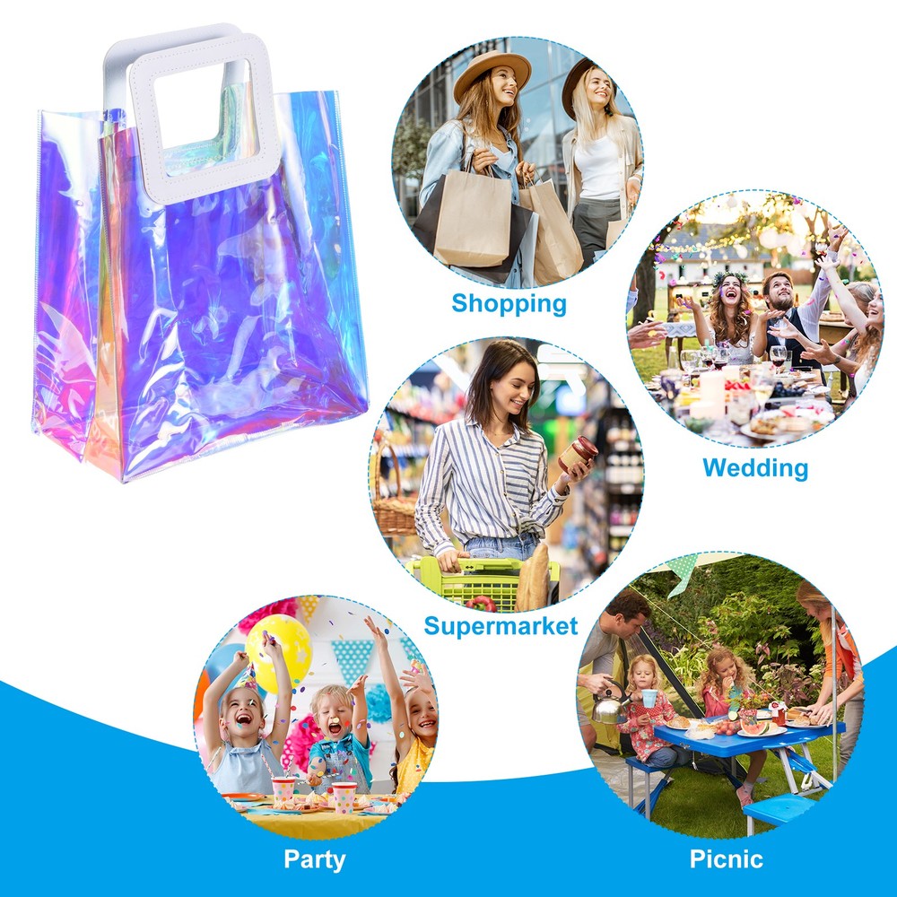 Document Waterproof & Durable: The iridescent gift bag is made of PVC, lightweight, waterproof, easy to clean, reusable, comfortable to touch, and not easy to break. Come with a square leather handle that is sturdy and durable enough, and can be used for a long time. (NOTE: The surface is smooth, but looks wrinkled due to reflection in photos)Large Capacity: The package contains 10 pieces of holographic gift bags, and the size of each piece is 28cm x 25cm x 15 cm/ 11" x 10" x 6". The capacity is sufficient, suitable for holding many items, and it is easy to carry. The quantity is sufficient to meet your various needs or share with others.Three-dimensional: The bottom of the holographic gift bags are square, and it is in a three-dimensional state when unfolded, which provides greater carrying capacity than ordinary plastic bags or shopping bags. Suitable for you to carry and store many small items, such as desserts, small gifts, make-up, biscuits, snacks, flower, books, etc.Iridescent Handbag Design: The iridescent design that reflects colorful light, the color of your gift and the color of the holographic gift bags will match to create a more dazzling light, allowing you to display delicate personal items or gifts. This exquisite bag isn't just for wrapping gifts. It is also part of your gift itself.Application: The holographic gift bags with handles can be used as a gift bag, stationery bag, candy bag, travel bag, cosmetic bag, art display bag and more. Widely suitable for parties, birthdays, weddings, celebrations, festivals, Christmas, Valentine's Day, etc. 10Pack Iridescent Gift Bags 11x10x6" Reusable Holographic Clear PVC Tote Bag Waterproof & Durable: The iridescent gift bag is made of PVC, lightweight, waterproof, easy to clean, reusable, comfortable to touch, and not easy to break. Come with a square leather handle that is sturdy and durable enough, and can be used for a long time. (NOTE: The surface is smooth, but looks wrinkled due to reflection in photos) Large Capacity: The package contains 10 pieces of holographic gift bags, and the size of each piece is 28cm x 25cm x 15 cm/ 11" x 10" x 6". The capacity is sufficient, suitable for holding many items, and it is easy to carry. The quantity is sufficient to meet your various needs or share with others. Three-dimensional: The bottom of the holographic gift bags are square, and it is in a three-dimensional state when unfolded, which provides greater carrying capacity than ordinary plastic bags or shopping bags. Suitable for you to carry and store many small items, such as desserts, small gifts, make-up, biscuits, snacks, flower, books, etc. Iridescent Handbag Design: The iridescent design that reflects colorful light, the color of your gift and the color of the holographic gift bags will match to create a more dazzling light, allowing you to display delicate personal items or gifts. This exquisite bag isn't just for wrapping gifts. It is also part of your gift itself. Application: The holographic gift bags with handles can be used as a gift bag, stationery bag, candy bag, travel bag, cosmetic bag, art display bag and more. Widely suitable for parties, birthdays, weddings, celebrations, festivals, Christmas, Valentine's Day, etc. Hot Item Payment 1.We accept eBay payment . 2.Payment must be received within 7 business days of auction closing. Shipping 1.We ship to your eBay or Paypal address. Please make sure your eBay and Paypal address is correct before you pay. 2.Items will be shipped within 1-3 business day when we received payment. 3.Delivery time depends on destination and other factors. Description Policy 10Pack Iridescent Gift Bags 11x10x6" Reusable Holographic Clear PVC Tote Bag Waterproof & Durable: The iridescent gift bag is made of PVC, lightweight, waterproof, easy to clean, reusable, comfortable to touch, and not easy to break. Come with a square leather handle that is sturdy and durable enough, and can be used for a long time. (NOTE: The surface is smooth, but looks wrinkled due to reflection in photos) Large Capacity: The package contains 10 pieces of holographic gift bags, and the size of each piece is 28cm x 25cm x 15 cm/ 11" x 10" x 6". The capacity is sufficient, suitable for holding many items, and it is easy to carry. The quantity is sufficient to meet your various needs or share with others. Three-dimensional: The bottom of the holographic gift bags are square, and it is in a three-dimensional state when unfolded, which provides greater carrying capacity than ordinary plastic bags or shopping bags. Suitable for you to carry and store many small items, such as desserts, small gifts, make-up, biscuits, snacks, flower, books, etc. Iridescent Handbag Design: The iridescent design that reflects colorful light, the color of your gift and the color of the holographic gift bags will match to create a more dazzling light, allowing you to display delicate personal items or gifts. This exquisite bag isn't just for wrapping gifts. It is also part of your gift itself. Application: The holographic gift bags with handles can be used as a gift bag, stationery bag, candy bag, travel bag, cosmetic bag, art display bag and more. Widely suitable for parties, birthdays, weddings, celebrations, festivals, Christmas, Valentine's Day, etc. Hot Item Payment 1.We accept eBay payment . 2.Payment must be received within 7 business days of auction closing. Shipping 1.We ship to your eBay or Paypal address. Please make sure your eBay and Paypal address is correct before you pay. 2.Items will be shipped within 1-3 business day when we received payment. 3.Delivery time depends on destination and other factors.