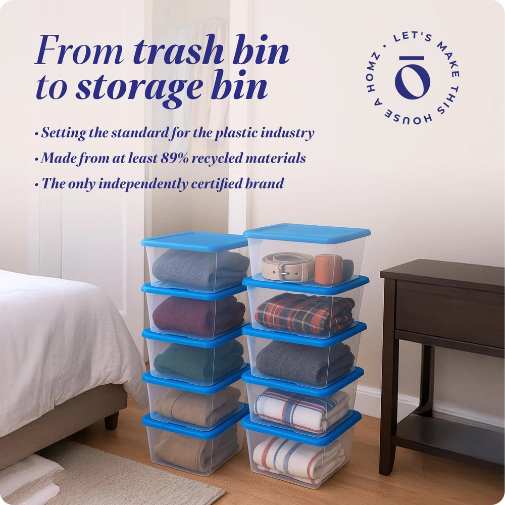 for Your Home: From organization to storage, we have the container that you are looking for. Proudly made in the USA, allow us to make your house a . Versatile Storage Solution: Organize your home, office, or classroom with these 6-quart clear plastic storage bins. Ideal for storing small items such as accessories, supplies, and more. Secure Lid Design: Tight-fitting lids provide secure closure to keep out dirt, insects, and water, ensuring your belongings stay protected. Stackable and Space-Saving: The stackable design maximizes vertical space, allowing you to neatly store and access your items in closets, garages, or under beds. Made from Recycled Materials: Crafted from 90% recycled plastic, these heavy-duty and durable storage bins are a sustainable choice for your home organization needs.