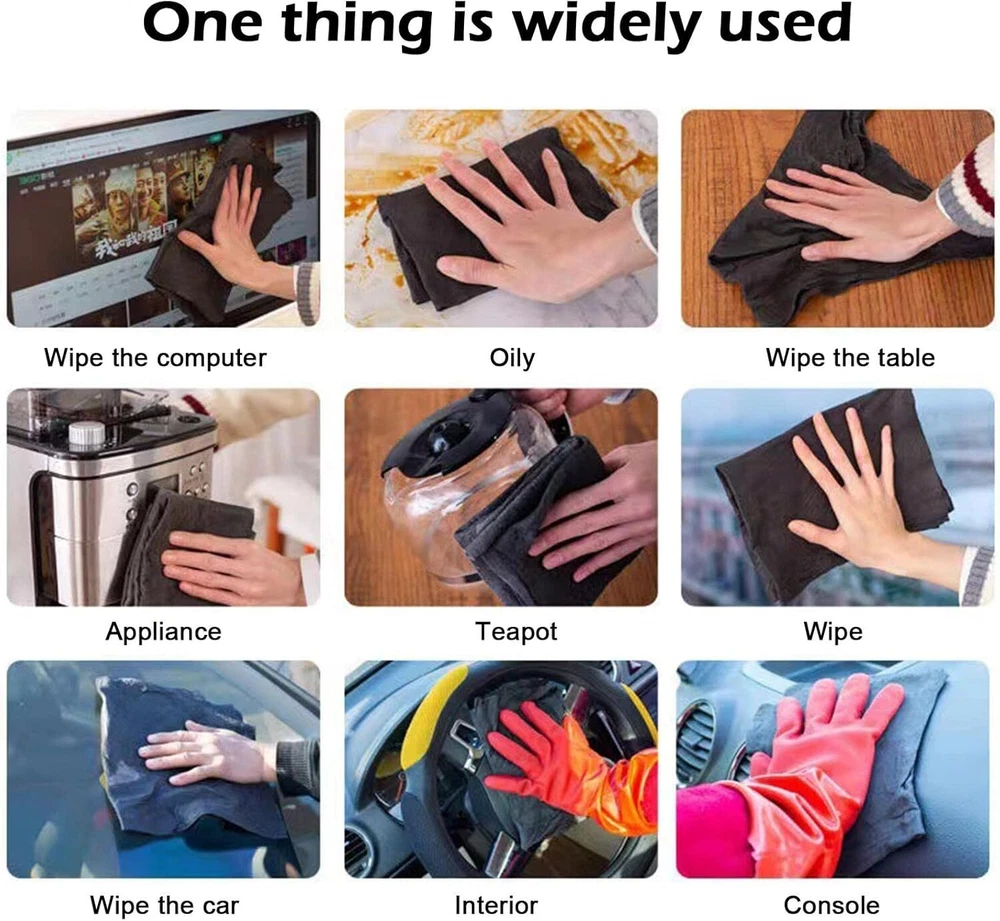 Product Description Easy to Clean 1: Wet the Sponge Sheets 2: Squeeze water of sheets 3: Wipe the Stains 4: Rinse and Reuse or Throw Away No more abrasive or corrosive cleaners needed with these cleaning wipes. Magic foam sheets can wipe marker pen stains, mud stains, oil stains, coffee stains, and even rust Multi-Purpose Using: 1: Erase scuffs and stains from your light sneakers, bags, furniture 2: Clean mirrors, which also prevents them from fogging 3: Remove tarnish from jewelry, cookware, and silver utensils 4: Remove adhesive residue and even melted plastic 5: Lift soap scum from shower and glass doors, walls, floors 6: Remove old coffee, tea stains from counters, coasters, cup holders 7: Clean tough stains in microwaves, grimy fridge handles, hard water spots and stains on sinks and faucets 【Magic Cleaning Cloth】The magic cleaning cloth is made of microfiber, which will not leave traces when wiping windows, mirrors or other glass products, and it will be as clean as a new one. Can be used on surfaces, cabinets, glass, quilts, faucets, etc. 【HIGH ABSORPTION】:These micro fiber dish rags made from premium quality microfiber fabric have a soft,plush touch,highly absorbent,quick-drying.Lint free and streak free.They deliver extreme absorbency and Water locking ability.Can absorb 5 times its own weight in water. 【HIGHLY DURABLE & MACHINE WASHABLE】: This cloth is highly absorbent, quick-drying, and tough! It is designed to remove tar, grease, fingerprints, brake dust, soap scum, dirt, dust, lint, and more. Big enough to use for multi-purposes such as kitchens, furniture, cars and window and shower glass. Thin enough to control as easily as a paper towel! 【ECO-FRIENDLY&REUSABLE】: replace paper towels and expensive chemical cleaners. Keep one in the shower, one in the kitchen one in the garage and one in your car. When it's dirty just wash, rinse and reuse. 【EASY AND EFFICIENT TO USE】:Before use,just soak the microfiber cloths in water for a while,without adding any detergent,and then wring out the cleaning cloth to help you easily complete the cleaning work.Not leave water stains when wiped,Non-linting and Not Fade.It's the best companion for your household cleaning.