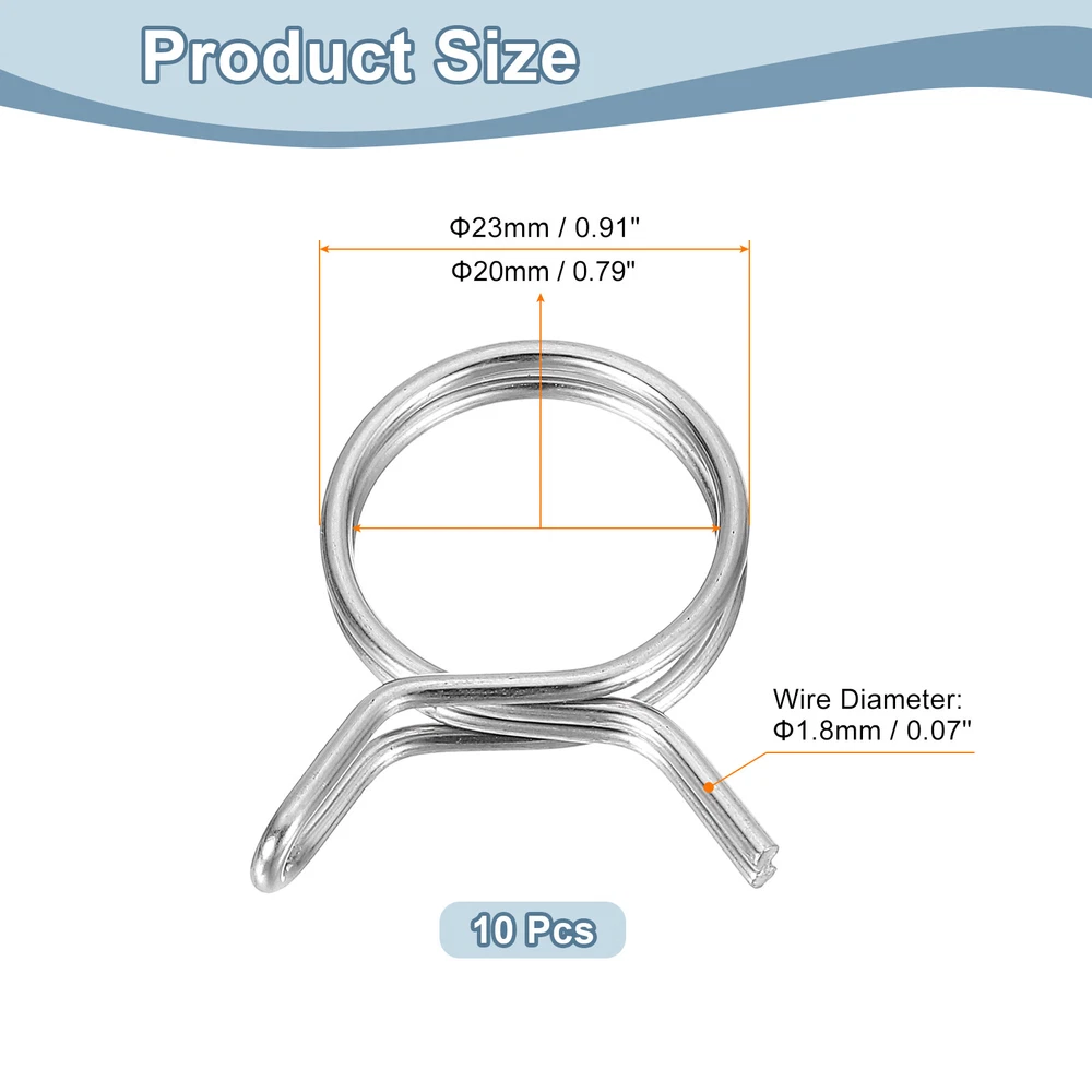 10Pcs 0.79-0.91 Inch Double Wire Spring Hose Clamp, Adjustable Spring Clips