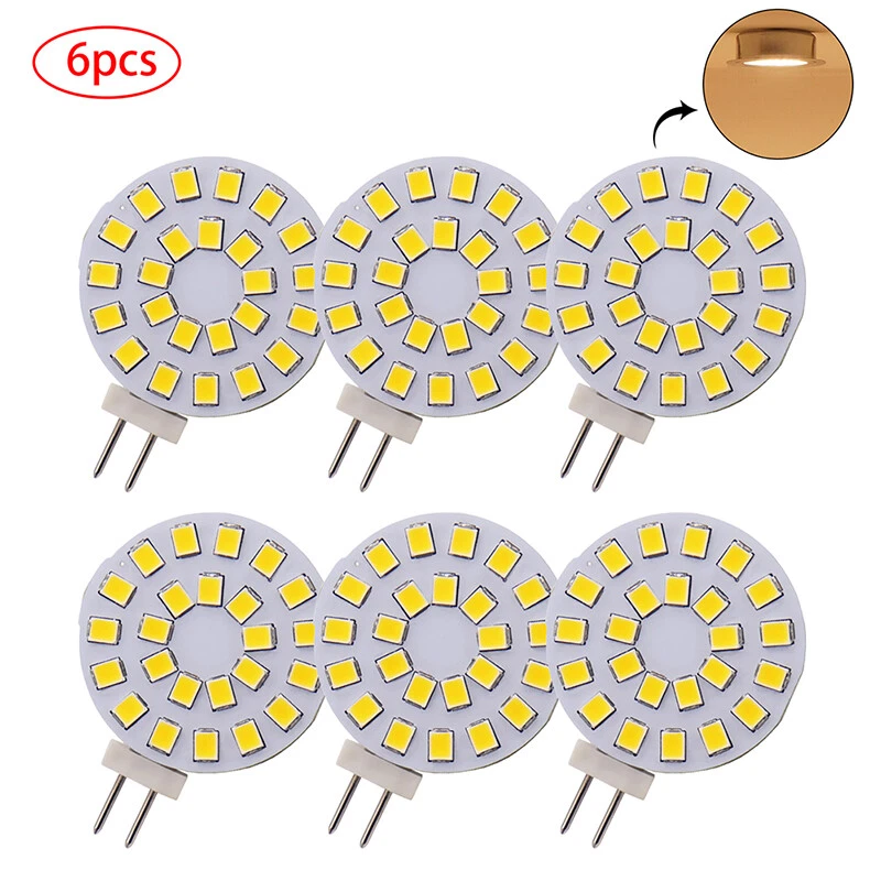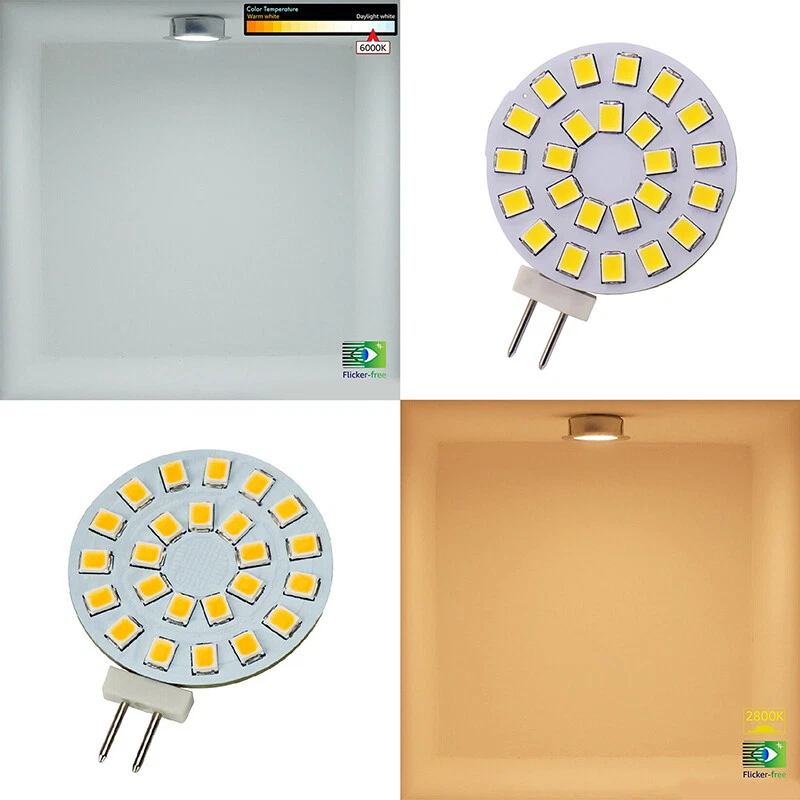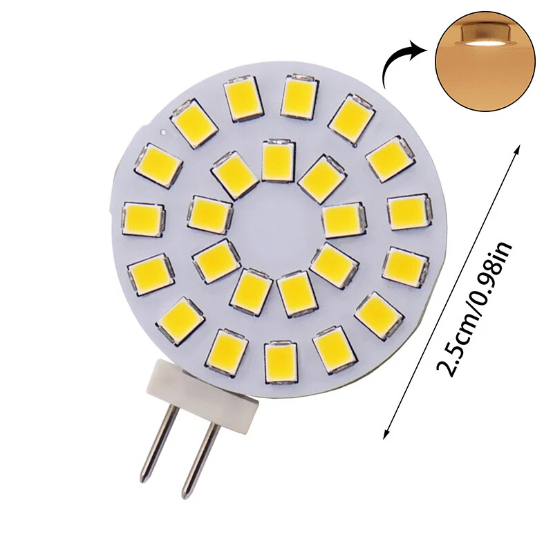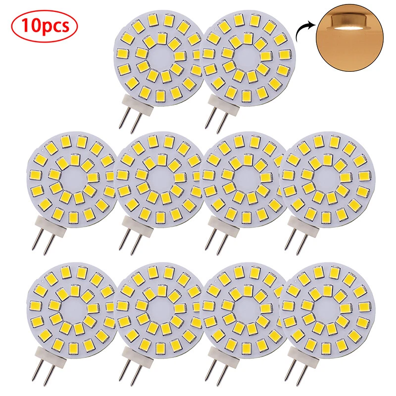 Description: G4 round LED lamps, 3 W replaces 20 W halogen light bulbs, 12 V AC/10-30 V DC, G4 bulbs for under-cabinet light recessed spotlight furniture recessed light ceiling light [Energy Class A++] G4 LED lamp delivers 200 lumens of light output, which corresponds to 20 watts of halogen with only 3w of energy consumption. Standard Ra80+, these bulbs create a comfortable and relaxing environment and differ from the original halogens xenon which emit a lot of heat. Features: The LEDs are exceptionally long-lasting, with an expected lifespan of 20,000 hours, 10 times the lifespan of halogens, significantly reducing the frequency of replacing burned-out bulbs. It is designed for use in 12V AC/DC household lighting, in-ceiling puck spotlight, under cabinet lighting, furniture cabinet, wardrobe downlight and in 10-30V DC circuit such as RV and RV (Note: The bulb can not be used with AC power over 16V). Each pack includes 6pcs,10pcs bulbs, brand new JAUHOFOGEI LED 1-year replacement warranty and 24-hour customer technical support. Specifications: Light Bulb Base: G4 Bulb Power: 1.8W Luminous Flux: 200 lm Voltage: 12V Light Color: Warm White, Cool White Color Temperature: 3000K, 6000K Led Chip: 2835 Bulb Shape: Circle Bulb Life: 20,000-24,999 hrs Eec Spectrum: A++ - G Package: 6 Pcs G4 LED Bulbs 10 Pcs G4 LED Bulbs On Dec 19, 2024 at 10:07:36 PST, seller added the following information: