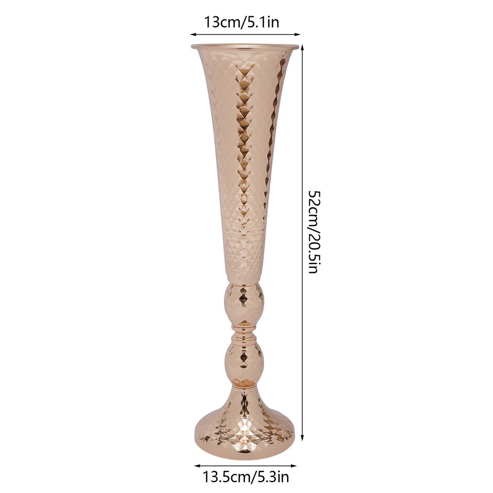 10Pcs 17.3/20.5 Tall Metal Trumpet Vase Silk Floral Wedding Centerpieces Decor Description With a Classic Flared and Tall Design and a Shiny Finish, This Metal Trumpet Vase Is Perfect As a Decoration for Any Event. the Golden Body Will Make Your Events and Home More Gorgeous and Elegant. It's Perfect for Weddings, Birthday Parties, Anniversaries, Valentine's Day, and More, Making Your Space More Eye-catching and Pleasing to the Eye. Key Features Exquisite Decoration: You Can Put the Artificial Flower Ball in the Vase As a Beautiful Vase Decoration for some Special Days, Especially Weddings, or As a Normal Home Decoration. Durable Vase: the Metal Trumpet Vase Is Made of High-strength Iron, Which Has Strong Impact Resistance and Is Not Easy to Deform. Attractive Appearance: the Vase Adopts a High Foot Design and Classic Flared Design with an S Shape, and the Metal Surface Is Mechanically Pressed with Diamond-shaped Patterns , Which Has a Unique Fashion Beauty. Great Gift: Its Delicate Shape Makes It a Perfect Housewarming or Wedding Gift. It Is a Great Decoration for Birthdays, Candlelight Dinners, Dining Room, Living Room, Living Room, Study, and bar. Simple Assembly: the Product Is Mainly Composed of Four Parts, Equipped with Complete Installation Accessories, and the Assembly Is Very Simple. Protective Packaging: the Accessories Inside the Product Package Are Packed with Pearl Cotton Bags, Which Can Effectively Protect the Metal Surface from Being Cut. so You Don't Need to Worry About the Product Being Damaged Due to a Collision During Transportation. Versatile Style: Classic and Luxurious, the Golden Vase Is Perfect for Any Setting and Adds a Touch of Brilliance to Your Space. Fine Workmanship: the Metal Surface Adopts the Electroplating Gold Process, Which Increases the Hardness of the Metal and the Corrosion Resistance. and the Advanced Plating Technology Can Make the Surface More Smooth and Shiny. Details Multiple Sanded Edges: the Metal Edges of the Vase Are Polished and Sanded Without Burrs, so You Won't Easily Scratch Your Hands When You Use Them. Flared Bottle Body: the Flared Bottle Body with a Wide Top and a Narrow Bottom Is Not Only Unique in Appearance but Also More Suitable for Placing Decorations Such As Flower Balls. Application It Is Suitable to Be Placed on the Tabletop in the Living Room, Bedroom, Kitchen, Office, Etc. It Is Suitable for Use with Seasonal or Artificial Flowers, Brushes, Buds, Garlands, and Bouquets, As Decorations for Weddings, Birthday Parties, Anniversaries, and Valentine's Day. It Can Be a Gift for Family and Friends. Specification Material: Iron Color: Gold Mount Type: Desktop Mount Surface Treatment Process: Electroplating with Gold Gross Weight: 6.2kg/13.67lbs Net Weight: 5.8kg/12.79lbs Package Size: 35*35*22cm/13.78*13.78*8.66inch Each Product Size: 13.5*52cm/5.3*20.5inch Bottle Mouth Diameter: 13cm/5.1inch Package Included 10 X Metal Trumpet Vase s All Accessories for Installation Notes This Vase Does Not Include Decorations Such As Flower Balls, You Need to Buy Them Separately. Please Note That This Product Cannot Directly Hold Water. Please Allow the Slight Color Difference Caused by the Shooting Light and 1-3 Cm Error Due to Manual Measurement, and Make Sure You Do Not Mind Before Ordering. Payment Delivery details Terms of sales About us Contact us Payment We accept ebay payment 。 Fees such as import duties, taxes are not included in the item price or shipping costs. These charges are the buyer's responsibility. Delivery details Shipping: 2-9 working days to: USA Terms of sales We maintain high standards of excellence and strive for hundred percent customer satisfaction. Feedback is very important to us. We hope that you contact us immediately before you give neutral or negative feedback, so that we can address your concerns. It is impossible to address issues if we do not know about them! About us Your satis faction is our ultimate goal. We work hard to earn your trust and future business. Our certified technicians have tested each item before shipping. The unit comes with 1 year limited warranty on all manufacturing defects. a) If you receive a defective item, you may return it or ask for a discount. Please contact us within 14 days after you receive the package. b) What you returned must be intact and in its original packaging as re? u. Customer is responsible for shipping costs of the returned item. c) We will cover the cost of shipping back t with the shipping rate indicated in the registration page. We will send you a new unit or refund the full payment you paid. Thank you. Contact us Business Hour Business Hour: Monday To Friday: 8:30 AM to 5:00 PM (Beijing China time) Due to time zones, our reply to your questions may not be immediately. But within above working time, we will reply your email within 24 hours. If it's non-workdays, please kindly be patient and wait till Monday. Please contact us with ebay message. Please feel free to contact us if you have any questions. Monday To Friday: 8:30 AM to 5:00 PM (Beijing China time) Due to time zones, our reply to your questions may not be immediately. But within above working time, we will reply your email within 24 hours. If it's non-workdays, please kindly be patient and wait till Monday. Please contact us with ebay message. Please feel free to contact us if you have any questions.