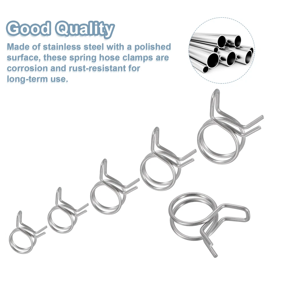 Document Description: Material: Made of stainless steel with a polished surface, these spring hose clamps are corrosion and rust-resistant for long-term use.Design: The spring hose clamps are designed with double-wound wire, which can spread the clamping force around the hose, and is more cost-effective than single-wire clamps.Easy to Use: These spring hose clamps are very easy to use, just use pliers to open the clamp and easily place it on the pipe.Wide Application: Spring hose clamps are widely used in automotive, agricultural, factory, and construction industries. Mainly used for fastening interfaces, they can firmly lock power equipment fuel lines, air hoses, water pipes, silicone hoses, vacuum hoses, automobile fuel lines, motorcycle air pipes, etc.Specification:Material: Stainless SteelFinish: PolishedInner Diameter: 30mm / 1.18inchMaximum Open Inner Diameter: 33mm/1.3inchWire Diameter: 2mm / 0.08inchPackage Content: 10pcs x Spring Hose Clamp Double Wire Spring Hose Clamp, 20pcs 304 Stainless Steel 6mm Spring Clips USD 7.78 Double Wire Spring Hose Clamp, 10pcs 304 Stainless Steel 5.5mm Spring Clips USD 6.71 Double Wire Spring Hose Clamp, 20pcs 304 Stainless Steel 5mm Spring Clips USD 7.49 Spring Hose Clamp, 10pcs 65Mn Steel 9mm Low Pressure Air Clip, Nickel Plated USD 7.03 Fuel Line Hose Clips, 20pcs 11mm 65Mn Steel Tubing Spring Clamps (Silver) USD 7.22 Fuel Line Hose Clips, 5pcs 55mm 65Mn Steel Tubing Spring Clamps USD 8.67 10Pcs 30mm/1.18inch Double Wire Spring Hose Clamp, Adjustable Spring Clips Description: Material: Made of stainless steel with a polished surface, these spring hose clamps are corrosion and rust-resistant for long-term use. Design: The spring hose clamps are designed with double-wound wire, which can spread the clamping force around the hose, and is more cost-effective than single-wire clamps. Easy to Use: These spring hose clamps are very easy to use, just use pliers to open the clamp and easily place it on the pipe. Wide Application: Spring hose clamps are widely used in automotive, agricultural, factory, and construction industries. Mainly used for fastening interfaces, they can firmly lock power equipment fuel lines, air hoses, water pipes, silicone hoses, vacuum hoses, automobile fuel lines, motorcycle air pipes, etc. Specification: Material: Stainless Steel Finish: Polished Inner Diameter: 30mm / 1.18inch Maximum Open Inner Diameter: 33mm/1.3inch Wire Diameter: 2mm / 0.08inch Package Content: 10pcs x Spring Hose Clamp Hot Item Fuel Line Hose Clips, 100pcs 11mm 65Mn Steel Tubing Spring Clamps USD 12.35 Fuel Line Hose Clips, 100pcs 3mm 304 Stainless Steel Tube Spring Clamps(Silver) USD 12.2 Fuel Line Hose Clips, 20pcs 4mm 65Mn Steel Tubing Spring Clamps USD 7.42 Fuel Line Hose Clips, 20pcs 25mm 304 Stainless Steel Tube Spring Clamps(Silver) USD 9.27 Double Wire Spring Hose Clamp, 50pcs 304 Stainless Steel 10mm Spring Clips USD 11.2 Payment We accept eBay payment. Please do not email us to ask for other payment option. We appreciate prompt payment and look forward to your business in the future. Unpaid item will be filed without receiving payment in 7 days from listing ended. Shipping Usually we ship your order out within 24 hours in business day. For shipping and handling charges (S&H) for specific item, please refer to the item listing page for more details. Please make sure your shipping address is correct. We are not responsible for any loss in transit if a wrong address is provided. Return Policy Returns for exchange are permitted and must be initiated by the buyer within 30 days upon receipt. If you would like to return your product(s) for repair / replacement / refund, please kindly contact our customer service representatives via email for an authorized RMA number. Your returned product(s) will not be processed without a completed RMA. About Us We are continually expanding our product selection to better serve your need. We look forward to providing the best sevice to you - our dear customers, so take a look around our store and find the product that you want. You can put your trust in us! If you need any help or have any suggestions, please don't hesititate to contact us anytime , we will reply you within 24 hours and try the best to help you. Description Policy 10Pcs 30mm/1.18inch Double Wire Spring Hose Clamp, Adjustable Spring Clips Description: Material: Made of stainless steel with a polished surface, these spring hose clamps are corrosion and rust-resistant for long-term use. Design: The spring hose clamps are designed with double-wound wire, which can spread the clamping force around the hose, and is more cost-effective than single-wire clamps. Easy to Use: These spring hose clamps are very easy to use, just use pliers to open the clamp and easily place it on the pipe. Wide Application: Spring hose clamps are widely used in automotive, agricultural, factory, and construction industries. Mainly used for fastening interfaces, they can firmly lock power equipment fuel lines, air hoses, water pipes, silicone hoses, vacuum hoses, automobile fuel lines, motorcycle air pipes, etc. Specification: Material: Stainless Steel Finish: Polished Inner Diameter: 30mm / 1.18inch Maximum Open Inner Diameter: 33mm/1.3inch Wire Diameter: 2mm / 0.08inch Package Content: 10pcs x Spring Hose Clamp Double Wire Spring Hose Clamp, 20pcs 304 Stainless Steel 6mm Spring Clips USD 7.78 Double Wire Spring Hose Clamp, 10pcs 304 Stainless Steel 5.5mm Spring Clips USD 6.71 Double Wire Spring Hose Clamp, 20pcs 304 Stainless Steel 5mm Spring Clips USD 7.49 Spring Hose Clamp, 10pcs 65Mn Steel 9mm Low Pressure Air Clip, Nickel Plated USD 7.03 Fuel Line Hose Clips, 20pcs 11mm 65Mn Steel Tubing Spring Clamps (Silver) USD 7.22 Fuel Line Hose Clips, 5pcs 55mm 65Mn Steel Tubing Spring Clamps USD 8.67 Hot Item Fuel Line Hose Clips, 100pcs 11mm 65Mn Steel Tubing Spring Clamps USD 12.35 Fuel Line Hose Clips, 100pcs 3mm 304 Stainless Steel Tube Spring Clamps(Silver) USD 12.2 Fuel Line H