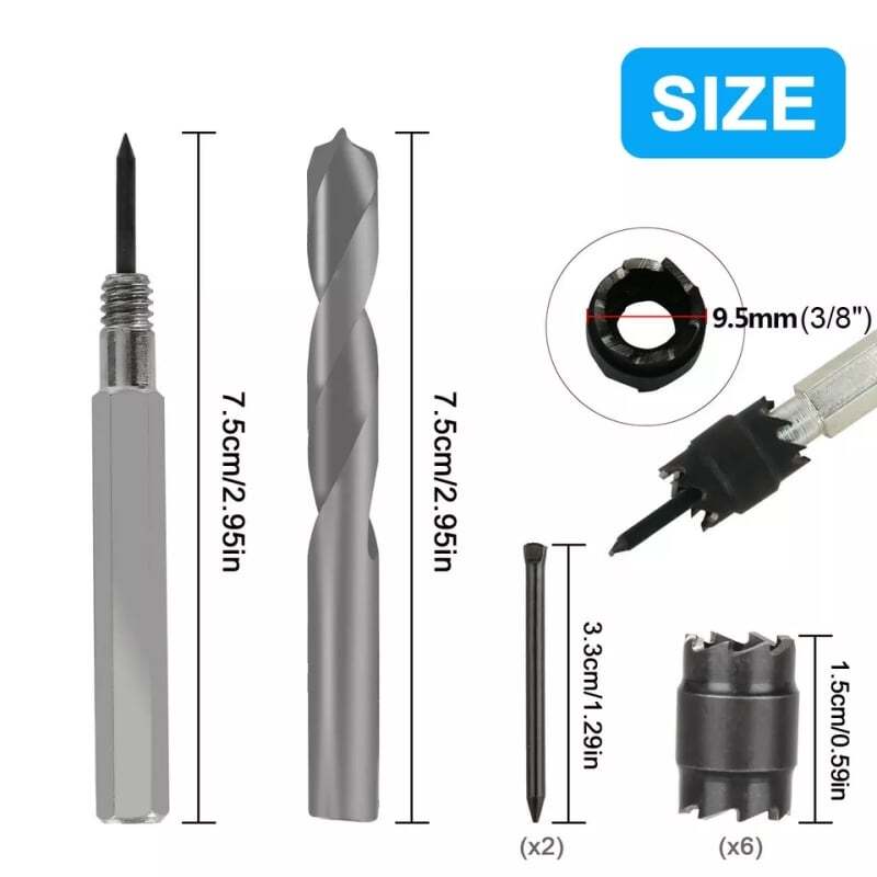 Product Feature HSS Material: Made of high-speed steel material, high hardness and wear resistance. Center pin on the bit is spring-loaded. Double-sided Blades: Sharp double-sided blades for high efficiency. Suitable for thin stainless-steel sheets, iron sheets, aluminum sheets, F.R.P, or other thin metal sheets. Spot weld cutter drill bit for easily separate spot-welded panels without distorting the sheet metal. Separate Spot-welded sheet metal, panel, etc. and cut small access holes. This weld cutter is a double-sided rotary cutter blade that separates spot-welded panels more effectively than a panel cutter. Double-sided 3/8-inch rotary blade and Hex Shank fit most drills. Easy to replace the blades when it begins to dull. Product Specification Type Double Sided Rotary Spot Weld Cutter Material HSS Diameter of the Saw Tooth Part 3/8"(9.5mm) Use Iron, cast iron, alloy steel, carbon steel, die steel Package Included 1 x Electric Welding Drill Kit (Including 10pcs)