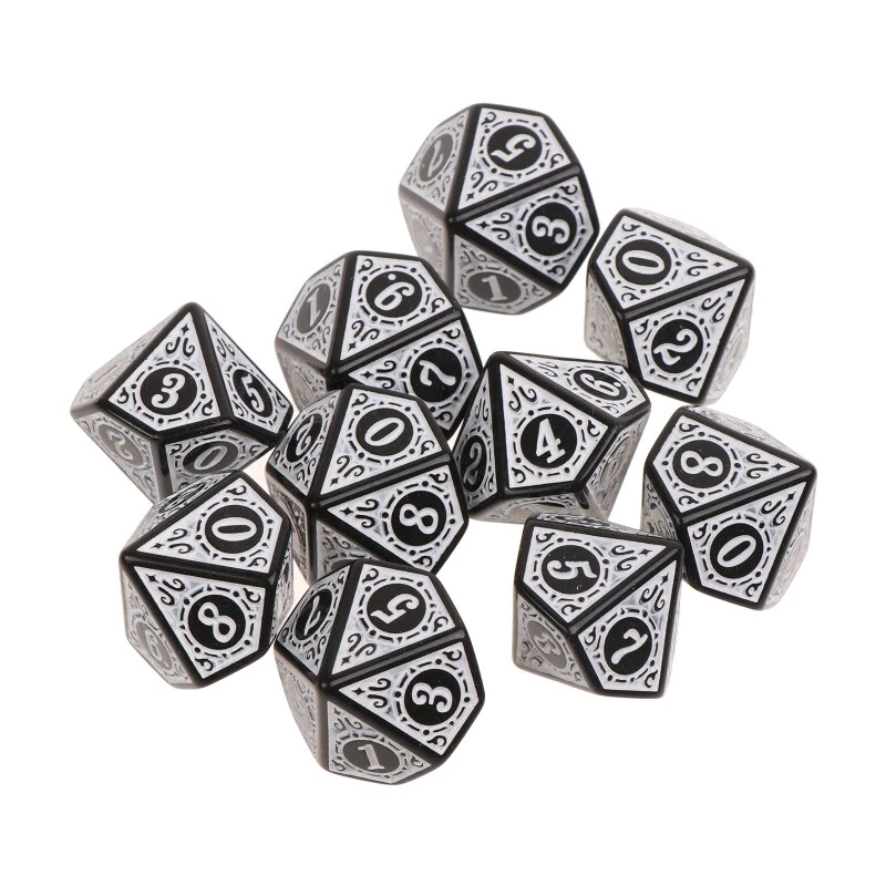 10Pcs 5 Colors Multifaceted Dice d10 Polyhedral TRPG Games Dice Set Board Game