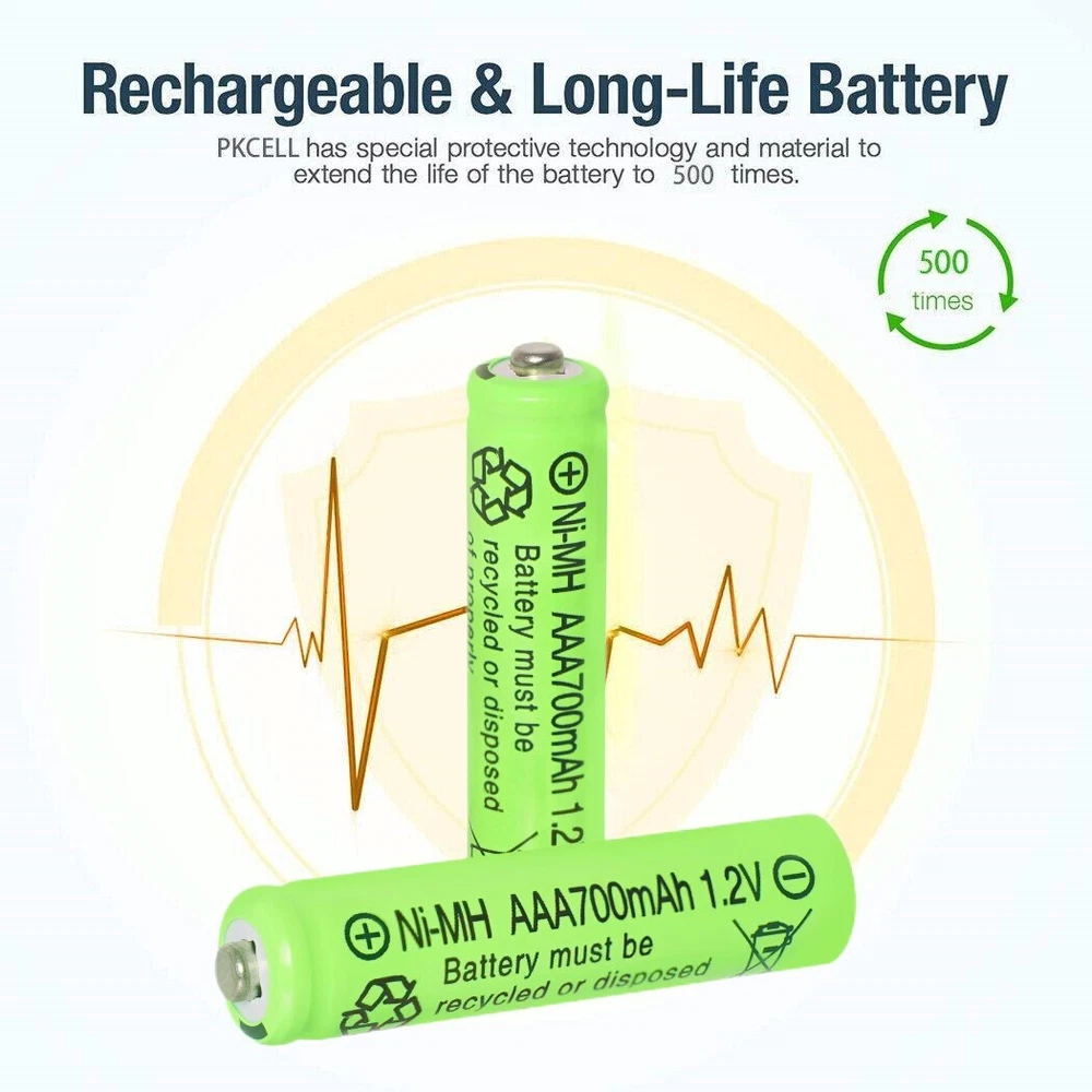 10Pcs AA & 10Pcs 1.2v AAA Ni-MH Rechargeable Batteries 700mAh for Solar Light Warm Tips: Before use, please remove the plastic packaging film of the battery. AA / AAA NiMH Battery 1.2v Features: 1.【Widely used】 The AA batteries rechargeable 1.2v is perfect for solar garden lights, landscape lights, lawn lights, etc.It can replace all disposable alkaline batteries for low power electronic products. 2.【Easy to Charge】 The AA rechargeable batteries Ni-MH can be charged by solar lights or standard charging devices. Better high-temperature performance than other types of batteries, can be used from -4℉ to 140℉, and can be charged from the sun even in the snow. 3.【Safe and Reliable】 The Ni-MH AA 1.2v rechargeable battery is very safe and reliable. For transportation safety, these Ni-MH AA batteries are only pre-charged to 30%, so please charge them before use for longer working time. 4.【Durable】 Our Ni-MH AA batteries rechargeable have a capacity of 700mAh and can be recharged at least 500 times continuously. Save you the cost of buying disposable alkaline batteries and reduce the harm to the environment. 5.【Suggestion】 Please charge the battery after each power exhaustion, otherwise it will affect the capacity and life. In addition, charge every 3 months to extend the life of the battery. NiMH AA Battery 1.2v Specification: Capacity: 700mAh Voltage: 1.2V Size: diameter 14mm*50 mm Terminal Type: Button Top Chemistry: Ni-MH (Nickel Metal Hydride) Rechargeable Times: Up to 1000 times No Memory Effect Note: Do not disassemble or modify the rechargeable battery NiMH AAA Battery 1.2v Specification: Capacity: 700mAh Voltage: 1.2V Size: diameter 10mm*44 mm Terminal Type: Button Top Chemistry: Ni-MH (Nickel Metal Hydride) Rechargeable Times: Up to 1000 times No Memory Effect Note: Do not disassemble or modify the rechargeable battery Package Included: 10X Ni-MH AA 1.2v Rechargeable Battery 700mAh 10X Ni-MH AAA 1.2v Rechargeable Battery 700mAh Warm Tips: 1. Before use, please remove the plastic packaging film of the battery. 2. Please check the "+" and "—" directions of the battery before you charge the battery. 3. Do not put the product into fire, short circuit, dissassemble and extrude. 4. Do not mix charging with different type of batteries, which may explode or leak, causing personal injury. 5. Please use up the power each time, then recharge it otherwise it will affect its capacity and lifetime. 6. Please take out the battery if you won't use for a long time to avoid battery leakage. 7. Note:Please find us in first time when you find the parcel Broken/Scratch/Function Error/Miss Parts/Unwork/has not arrived etc, we always have more details and solutions, even duty for your order. On Jan 4, 2025 at 08:01:10 PST, seller added the following information: