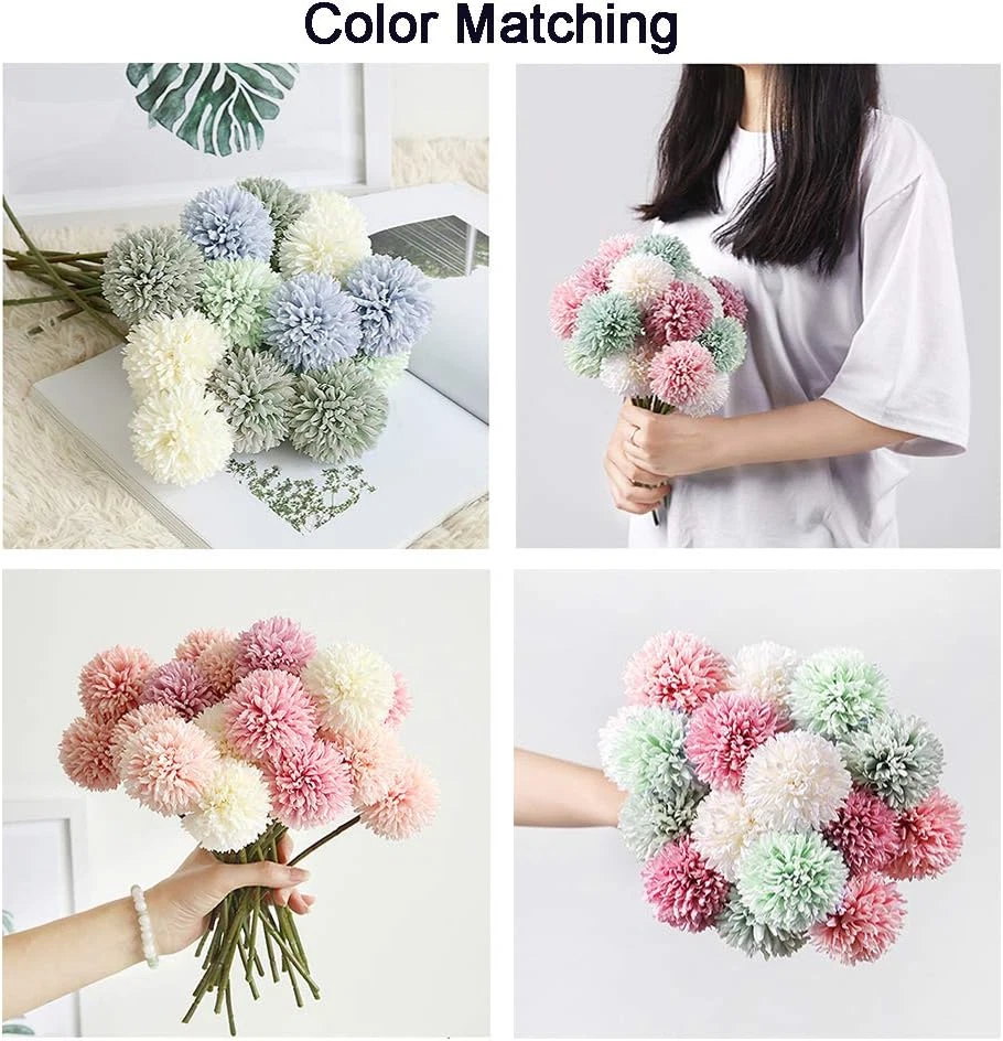 10Pcs Artificial Fake Flower Plants Silk Chrysanthemum Ball Hydrangea Arrangemen