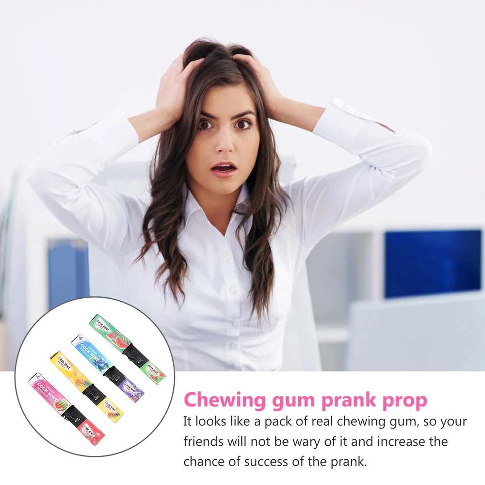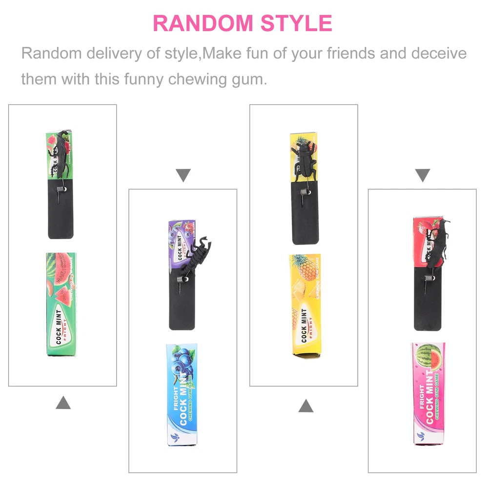 Description Make fun of your friends and deceive them with this funny chewing gum. When the fake gum is pulled apart, it will show up a fake , scaring the person who pulled it. The product itself will not cause any harm to the human body, but the effect of adventurous stimulation may cause discomfort or disgust for some people. Features - Color: Random Color. - Material: Paper, plastic. - Size: 8.50X2.20X1.50cm/ 3.34X0.86X0.59in. - It looks like a pack of real chewing gum, so your friends will not be wary of it and increase the chance of success of the prank. - When your friends reach out for this gum, a will appear to shocking your friends. - When you try to open this gum, you will get an unexpected "little surprise". - Just for fun. Not recommended for children or patients with heart disease. - Note: The product itself will not cause any harm to the human body, but the adventurous and stimulating effect may cause discomfort or disgust for some people. 10 x prank toys