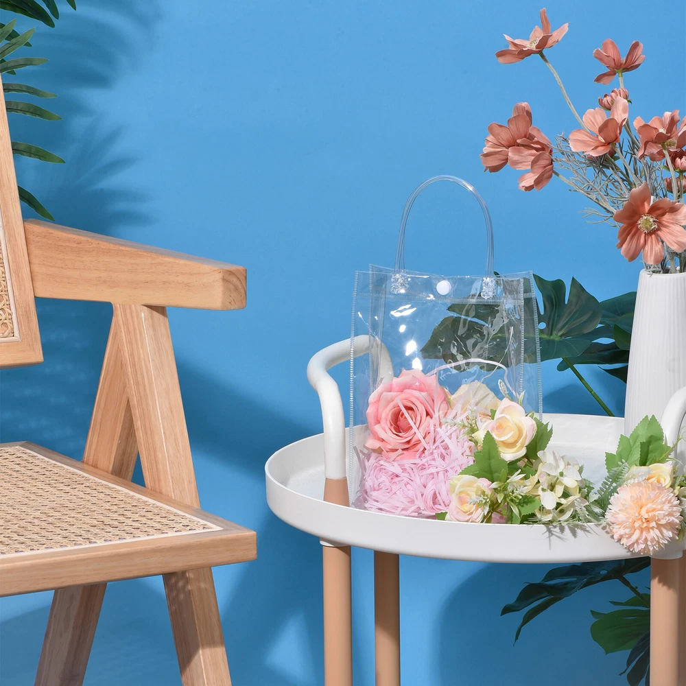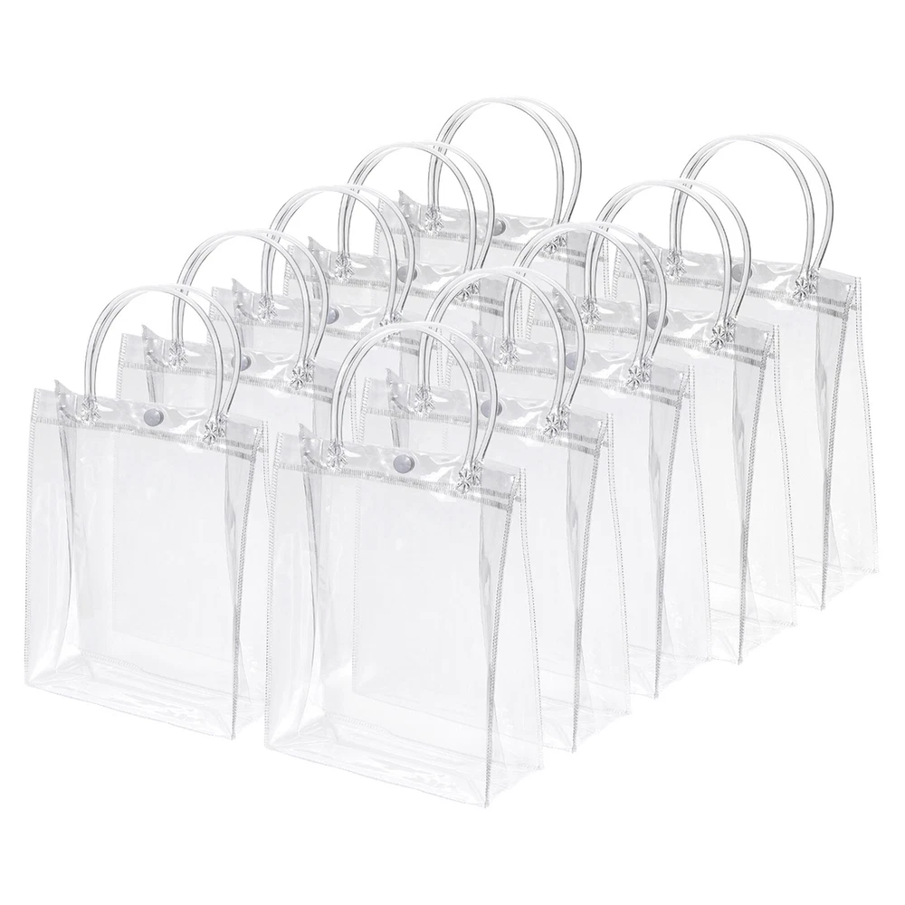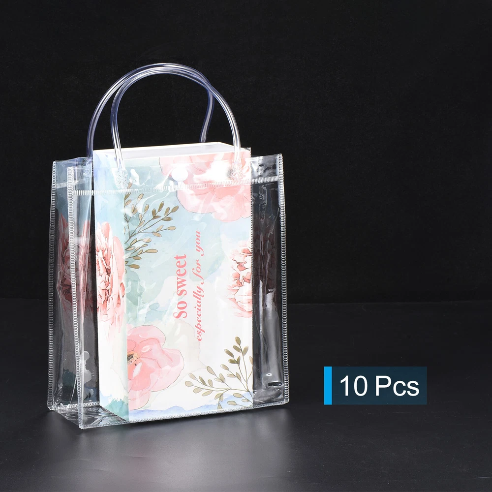10Pcs Clear PVC Gift Bags, 13.4" x 9.4" x 4.7" Reusable Mini Gift Wrap Tote Bag