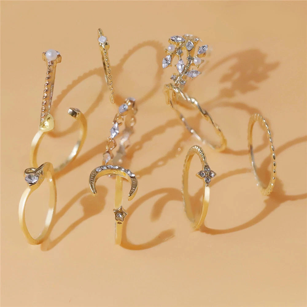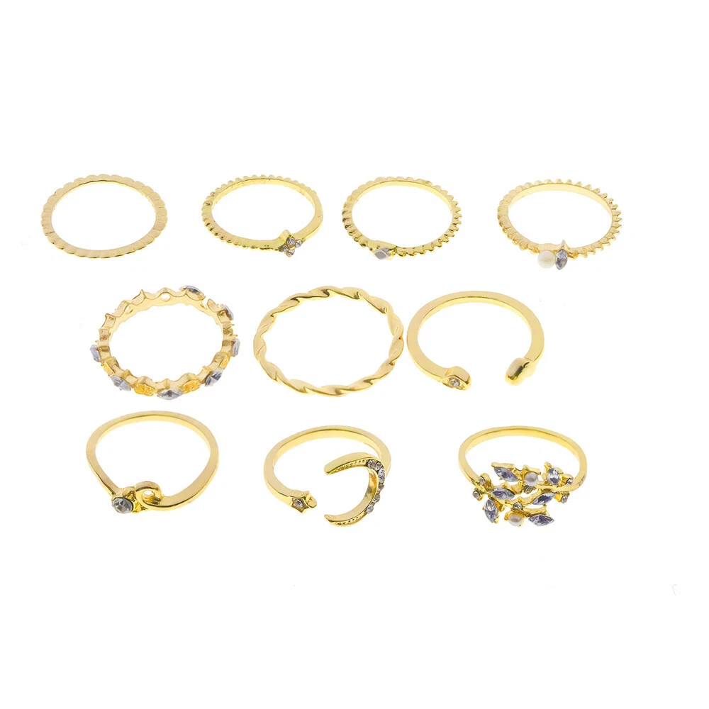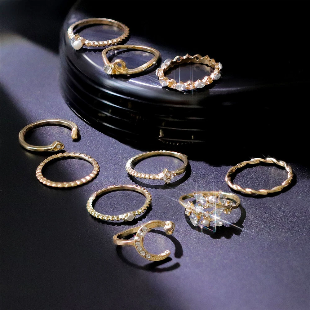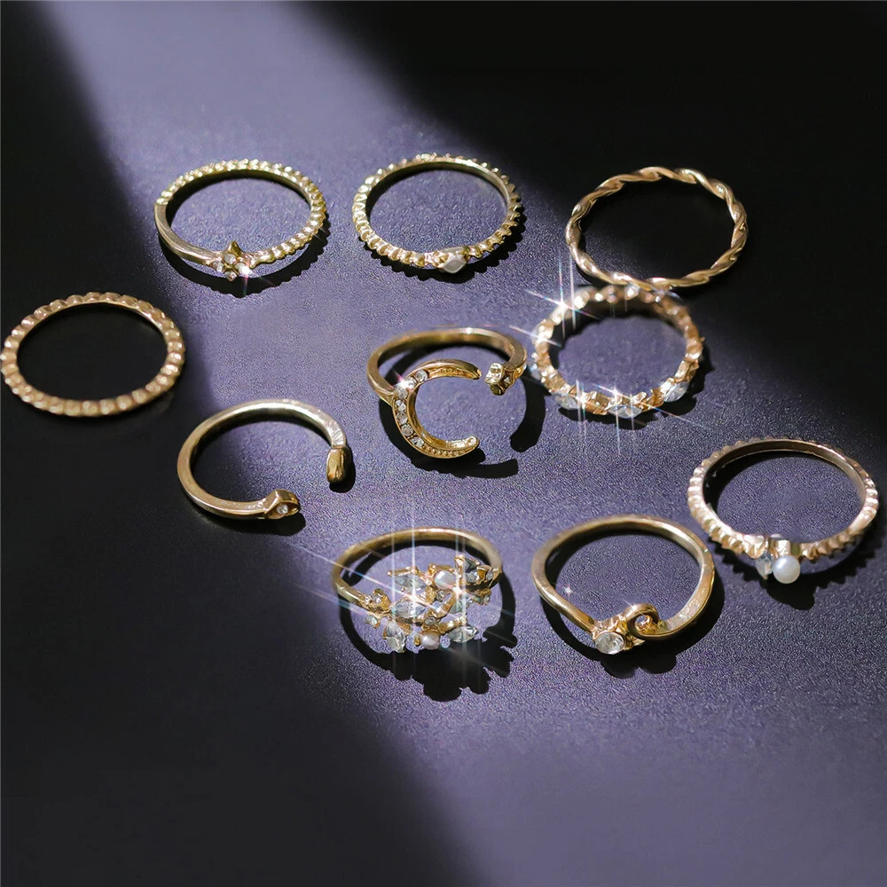 10Pcs Gold Crystal Butterfly Moon Star Rings Knuckle Women Jewelry Gift New