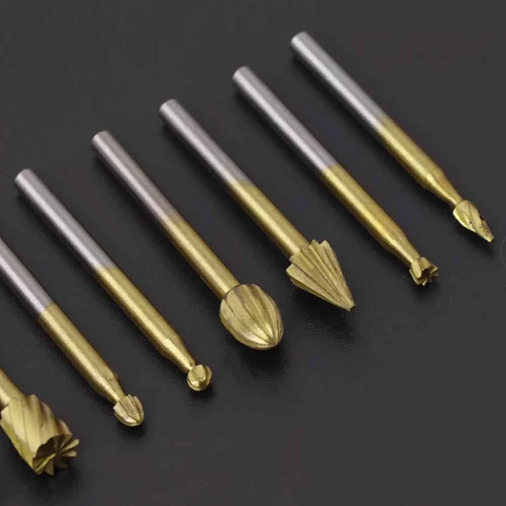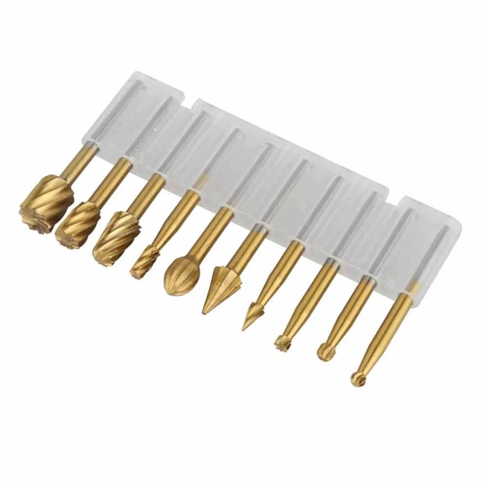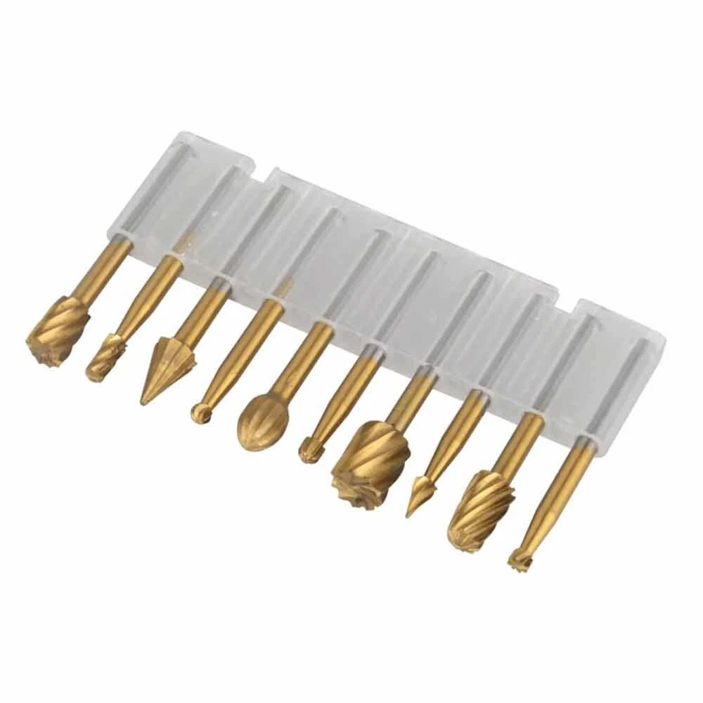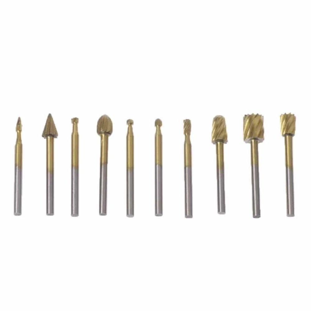 10Pcs HSS Routing Wood Carving Tools Rotary Drill File Router Bit For Dremel These Are Super High Quality Tungsten Carbide Cutting / Carving / Routing Burrs - They Will Remain Sharp For a VERY Long Time! These Burr Bits Work On Metal , Wood , Plastic , Fiberglass , PVC , And More - They Are Perfect For Cutting , Carving , Notching , Routing , And Woodworking etc. Compatible With Dremel Rotary Tools - They Have a Standard 1/8" Diameter Shank. Product Specifications: Material: Tungsten Carbide Cutter Diameter: 1/4" (6mm) Shank Diameter: 1/8" (3mm) Shank Length: 22mm Total Length: 40mm Compatible With Dremel Rotary Tools Tungsten Carbide Burrs Easily Cut, Carve, And Notch The Following Materials: Metal Wood Plastic PVC Fiberglass Iron Carbon Steel Stainless Steel Aluminum Stone Ceramic & Porcelain Plastic, Carbon Fiber Reinforced Plastic (CRP), Glass Fibre Reinforced Plastic (GRP) Brass, Copper & Bronze Gold, Platinum & Silver And MUCH MORE Package Included: 1x Set Drill bit
