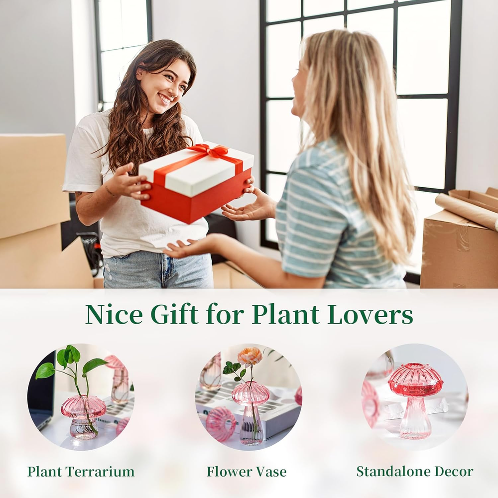 Menu Other Items Feedbacks About Us Contact Us Add To Favorites Mushroom Jars for Plants, 10Pcs Pink Glass Mushroom Bud Vase for Flowers, Unique Plant Propagation Stations Propagating Vases Decor, Mini Cute Hydroponic Terrarium Planter for Indoor Planters 【New Upgraded Mushroom Terrarium】: Made of hand-blown glass by craftsman, the glass mushroom jars for plants are gorgeous and delicate in details. The lightweight glass is delicate yet sturdy. The wider base of the glass planter ensures increased stability compared to normal glass mushroom vase set. And we've replaced the original four smaller holes with one larger opening, allowing the mushroom planter to hold more small stem flowers while providing better stability. 【Gorgeous & Unique Mushroom Vase】: Add a whimsical touch to any room with these adorable mushroom glass propagation jars. When light shines through, they emit a warm and charming glow. Perfect for appreciating on their own or showcasing the beauty of your plants when paired with flowers. The delightful dainty unique home decor is true eye candy. 【Multifunctional Plant Vase】: With an opening diameter of 0.78 inches, the mushroom propagation vase is perfect for small stem flowers or clippings, such as daisy's, poppy's and similar. You can fill it with water or little beads to make them more stable. Not only can it be used as a propagation station for cuttings, herbs, ferns, and pothos, but it also doubles as an adorable glass mushroom decor or a reed diffuser bottle. Also looks beautiful standing alone. 【Suitable for Various Occasions】: The plant propagation stations look wonderful in many different areas for the home or office. They will add a touch of nature and vitality in your home when you use them in living room, kitchen room, bedroom, dinning table centerpiece or windowsill. These hydroponic mushroom glass vases can also perfect for Christmas, Thanksgiving, Easter, Halloween, New Year, Mother's Day, housewarming, baby shower, birthday, wedding and anniversary. 【Warm Reminder】: Each glass mushroom terrarium kit is carefully inspected and the product and packaging are intact before being shipped out. But there will be bumps during transportation. If there is any damage, please feel free to tell us, we will try our best to make you satisfied. Product Description Compare with similar items Add to Cart Add to Cart Add to Cart Add to Cart Add to Cart Add to Cart Add to Cart Customer Reviews 5.0 out of 5 stars 3 4.4 out of 5 stars 155 4.6 out of 5 stars 184 4.5 out of 5 stars 68 4.5 out of 5 stars 124 4.4 out of 5 stars 93 4.7 out of 5 stars 249 Price $25.78 $ 25 . 78 $48.63 $ 48 . 63 $29.38 $ 29 . 38 $41.68 $ 41 . 68 $26.38 $ 26 . 38 $38.99 $ 38 . 99 $29.92 $ 29 . 92 Material Glass Glass Glass Glass Glass Glass Glass Quantity 5 6 6 8 6 6 12 Shape Mushroom Cylinder Cylinder Ribbed Skinny Square Mini Color Pink Gold Clear Clear Clear Clear Clear Occasion Centerpieces, Home Decor, Gift Centerpieces, Home Decor, Gift Centerpieces, Home Decor, Gift Centerpieces, Home Decor, Gift Centerpieces, Home Decor, Gift Centerpieces, Home Decor, Gift Centerpieces, Home Decor, Gift Item Specification Finish Type Natural Style Contemporary, Minimalist Number of Levels 1 Indoor/Outdoor Usage Indoor Color Pink-10pcs Pattern Solid Material Glass Country of Origin China Shape Mushroom Item Weight 1.9 pounds Theme Floral Number of Pieces 10 Special Feature Hand-Blown Glass, Unique Design, Lightweight Yet Sturdy Package Dimensions 15.04 x 10.2 x 5.2 inches; 1.9 Pounds Item Package Dimensions L x W x H 15.04 x 10.2 x 5.2 inches Included Components 10pcs Dimensions Shipping Returns Additional Info Product Dimensions: 10.2 inches x 15.04 inches x 5.2 inches. Weight: 1.9 lb Fast shipping is very important for us. Our standard shipping service is FREE. Your order will be shipped within 1-3 business days upon full payment received. Most items are delivered within 3-5 business days, however, please allow 3-10 business days. We are shipping only to USA. We only ship to the confirmed Paypal address. We reserve the right to cancel any order for any reason at any time. We are not responsible for undeliverable addresses. We offer a 30 day return policy from checkout winning date. Your satisfaction is guaranteed! If for any reason you are unhappy with your item, just return it within 30 days for a full refund, minus shipping cost. Please contact us prior to initiating a return so that we can issue you a refund authorization. Items defective upon receipt must be packaged in their retail packaging as if new and returned with a detailed description of the problem. Return shipping fees are not refundable. We reserve the right to decline any returns if the above guidelines are not followed. All of our items, unless otherwise stated, will only run on 120 volts. Please check to make sure your country complies with these specifications. If you have a problem or question regarding your transaction please contact us before leaving any type of feedback. We will work with you to resolve any problem you may have.