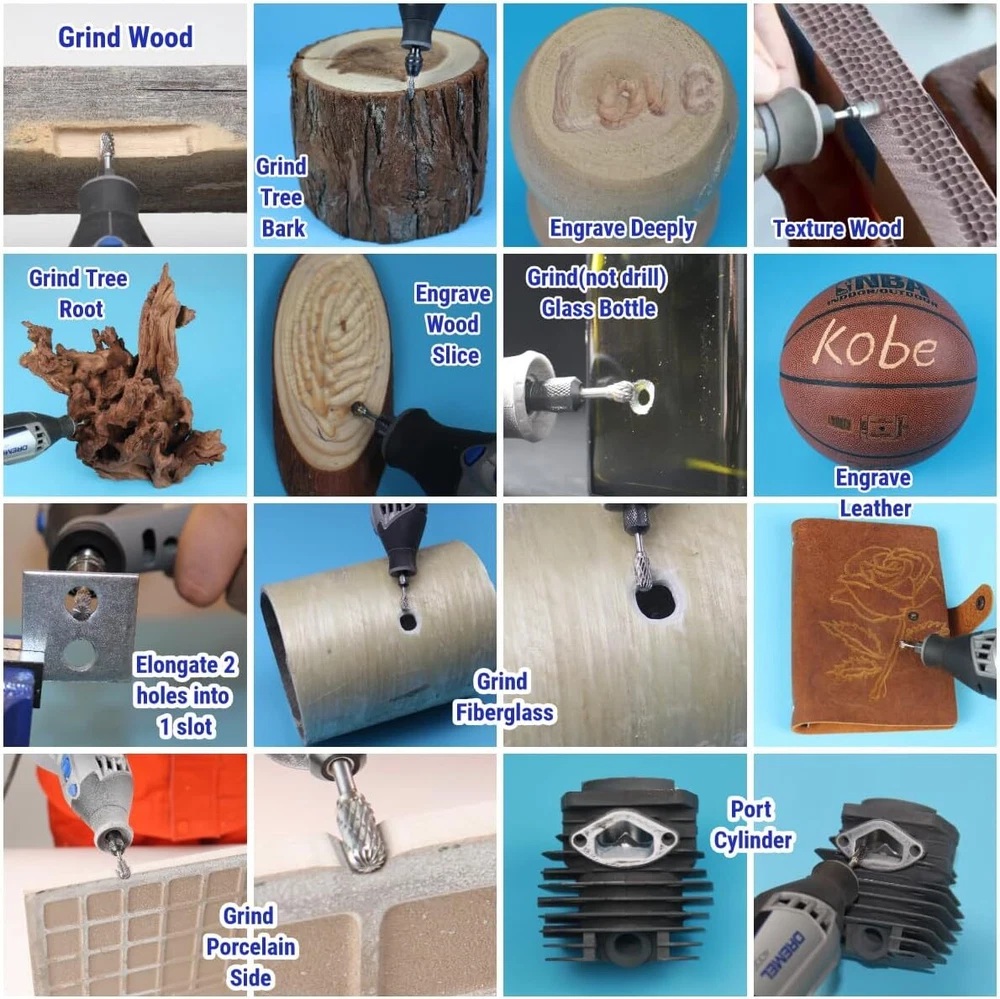 Free eBay listing template designed by dewiso.com 10 Pcs Carbide Burr Set 1/8" Shank Compatible with Dremel Milwaukee Bits Rotary Tools Attachment Kit Rasp Drill File Accessories Metal Wood Stone Steel Grinding Carving Cutting Polishing FREE AND FAST SHIPPING! About this item The 10pcs double cut tungsten carbide burr bits set compatible with Dremel metal grinding bits, compatible with Hardell Milwaukee DeWALT angle or straight air or electric die grinder or drill. More aggressive than diamond grinding bits stone grinding bits sanding drum sanding bits. Used for 3-jaw chuck drill (not optimal) and high speed rotary tool (optimal). A must-have versatile shape carbide burr bits kit cutting bits grinding bits carving bit engraving bits deburring bits drill bits for hard metal steel aluminum stone wood plastic. 3mm cylindrical shank compatible with Dremel 1/8"(3.175mm) shank bits compatible with Dremel rotary tool rasp file accessories wood carving bits compatible with Dremel flex shaft. Perfect for tight spaces than grinding wheel and grinding discs, great for detail work. For lots of materials removal please use our larger shank burrs bits and 500W+ rotary tool. 6 years returnless replacement. Product We offer a 30-Day Return Policy on items which you are not completely satisfied with. You have the option for a full-refund or an exchange of the item. No returns are available on items shipped outside of the US . Shipping We offer Free Shipping to the US and ship within 2 business days of payment, usually sooner. We use UPS express shipping. That's why your products are usually delivered within 3 days . Contact We try our very best to make sure every customer is completely satisfied. If there's a problem , message us! We're happy to help. 24/7 live chat available.