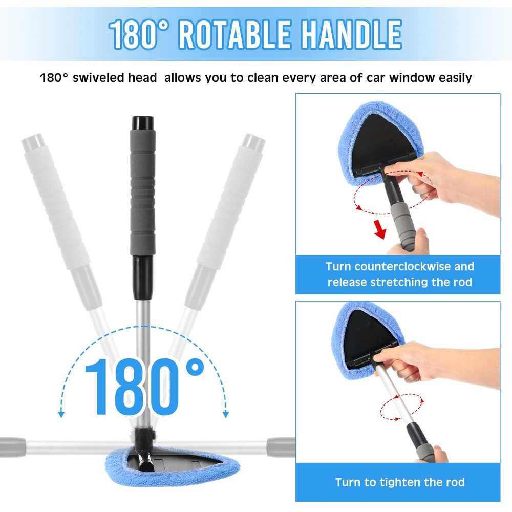 10 Pcs Windshield Cleaner Tool Car Window Cleaning Supplies with Extendable Handle Include 6 Washable Microfiber Bonnets 2 Empty 60ml Spray Bottle Glass Wiper Kit(Light Blue) Package Information: you will get 2 car windshield cleaners, 6 microfiber bonnets, and 2 empty 60ml spray bottles, totally 10 pieces; Enough quantity to meet your needs of use and replacement, you can also share them with others Reliable Material: the windshield cleaning supplies are made of plastic, sturdy and reliable, not easy to break or deform, the cloth pad heads are made of microfiber material, washable and reusable, able to serve you for a long time 180° Swiveled Head: our car window cleaner is designed with 180° swiveled head, which allows you to clean every area of car window easily, and the handle is long and comfortable to hold and use Wide Range of Application: our windshield cleaner can be applied on various interior and exterior surfaces, suitable for cars, SUV, trucks; Also, it is also applicable for house cleaning, such as cleaning window, wall, door, floor, bathroom, mirror, table Notes for Use: you can use the windshield wiper supplies to clean your windshield in different ways, use the pad or spray some water on the pad to clean the interior windshield, use the pad to clean the exterior windshield Features: The windshield cleaning supplies have fine workmanship and portable design, not easy to break or fade, and you can carry them to other places easily, will bring you convenience in using. If you have friends who need some outside window cleaners in the daily life, you can give them ours, they will like these gifts and feel happy. Specifications: Material: plastic, microfiber Color: light blue Size: width is approx. 5.5 inches, length is approx. 13.2 inches, and extends approx. 19 inches Package includes: 2 Car windshield cleaners 6 Microfiber bonnets 2 Empty 60ml spray bottles Notes: Manual measurement, please allow slight errors on size. The color may exist slight difference due to different screen displays. The pointed parts and small parts may include, please use it carefully. Shipping We offer FREE shipping on all orders! We ship within Three business days of payment, usually sooner. We use a selection of shipping services such as UPS, FedEx, USPS etc. We only ship to the lower 48 states, no APO/FPO addresses or PO Boxes allowed. Local pickups and combined shipping options are not provided at this time. Return You can return a product for up to 30 days from the date you purchased it. Any product you return must be in the same condition you received it and in the original packaging. Please keep the receipt. Payment We accept payment by any of the following methods: PayPal Please pay as soon as possible after winning an auction, as that will allow us to post your item to you sooner! Feedback Customer satisfaction is very important to us. If you have any problem with your order, please contact us and we will do our best to make you satisfied. Contact Us If you have any queries, please contact us via ebay. We usually respond within 24 hours on weekdays. Please visit our eBay store to check out other items for sale! Thank you for shopping at our store.